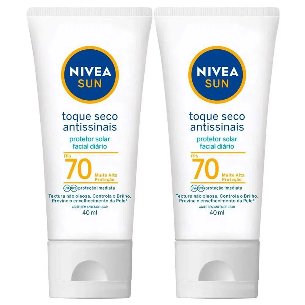 2 NIVEA Sun protetores solares Facial Toque Seco Antissinais Fps70 - 40ml