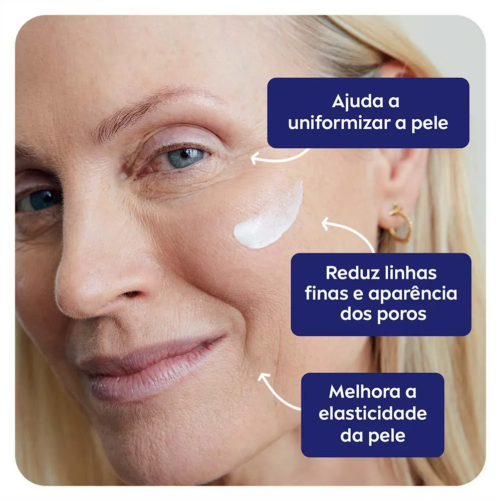 Cuidado intensivo diário de triplo combate contra: Raios UVA / UVB. Radicais livres causados pela luz visível. Poluição. Garante efeito de pele renovada em 4 semanas. Reduz rugas e linhas de expressão, mesmo na área dos olhos. Aumenta a produção de colágeno. Textura ultraleve, fórmula com algas marinhas e não interfere na duração da maquiagem.