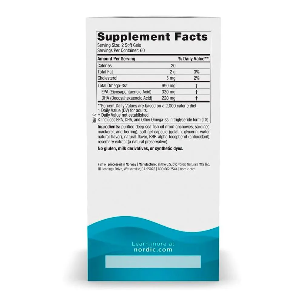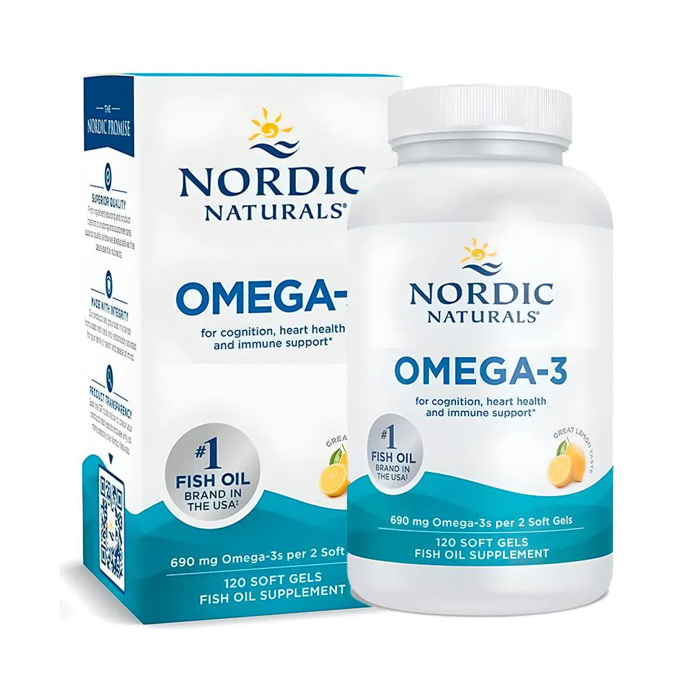 1. Nordic Naturals Omega-3 120 Cápsulas: O suplemento alimentar Nordic Naturals Omega-3 oferece uma fonte concentrada de ácidos graxos essenciais para sua rotina de bem-estar, ideal para quem busca suplementação diária de qualidade.
