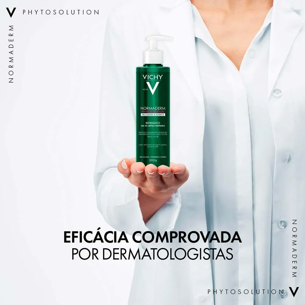 Normaderm Phytosolution Gel de Limpeza Intensivo possui base de limpeza de origem vegetal para limpar sem agredir a pele, enquanto a mantém hidratada. Eficaz em peles oleosas a acneicas, Normaderm Phytosolution Gel de Limpeza Intensivo possui uma fórmula pura: sem álcool, sem sabão, sem sulfato e com pH semelhante ao da pele para uma limpeza diária que respeita a pele. Ativos: Ácido Salicílico (purificante), derivado de probiótico (regenerador da barreira da pele), Zinco e Cobre (reguladores da oleosidade) e Água Termal Mineralizante de Vichy.