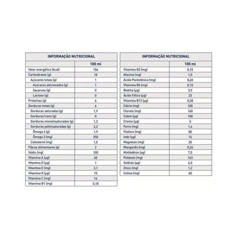 Fórmula padrão para nutrição enteral e oral. Normocalórica, normoproteica e normolipídica, 100% proteína isolada de soja do total de proteínas e fonte de vitaminas e minerais.