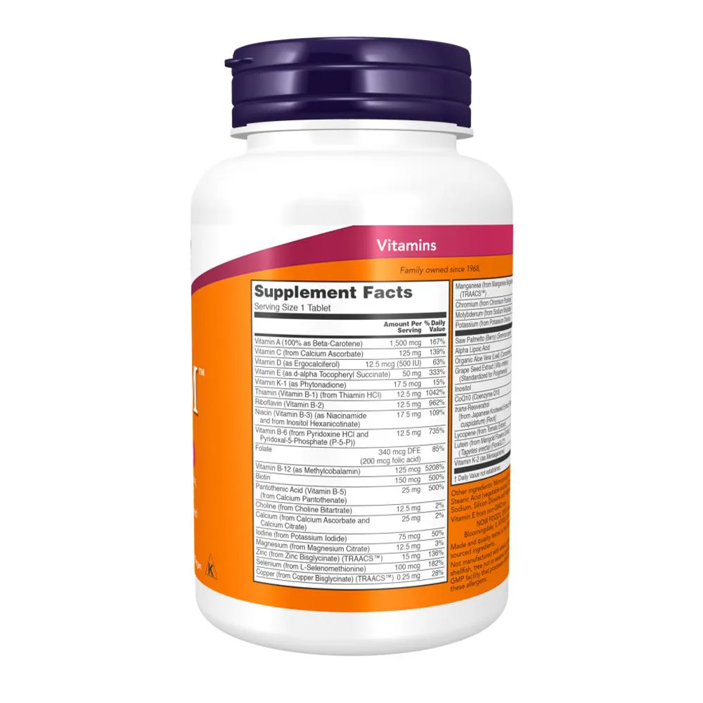 ADAM Multi Now Foods 120 tabs é um multivitamínico desenvolvido para atender às necessidades nutricionais diárias do homem moderno, reunindo vitaminas e minerais essenciais em uma única formulação prática e confiável.