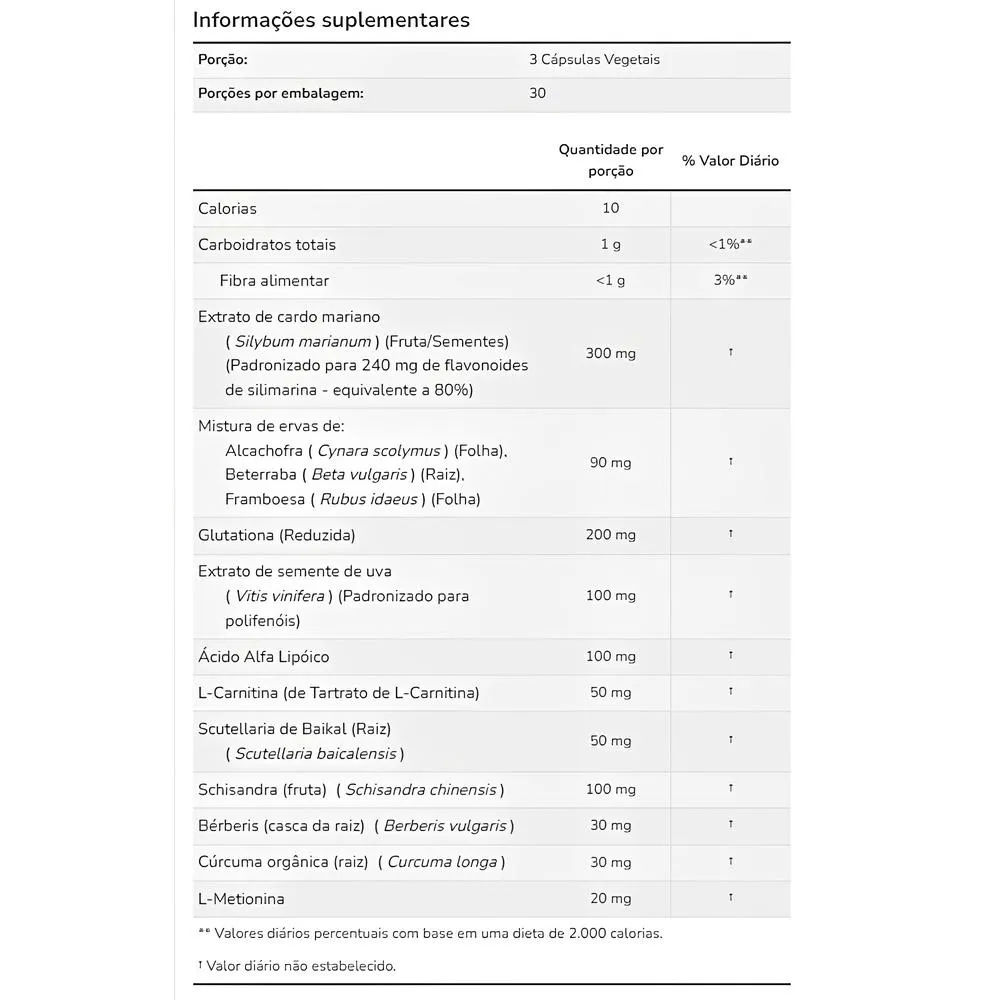O frasco contém 90 cápsulas, cada uma oferecendo a dose recomendada para apoiar o funcionamento do fígado. As cápsulas são fáceis de ingerir, proporcionando praticidade para incluir o produto na rotina diária de cuidados com o organismo. Validade longa.