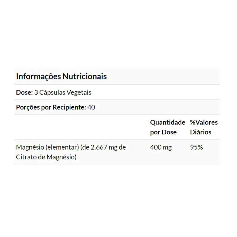 2. Vantagem das Cápsulas Vegetais: As cápsulas vegetais são uma forma prática e fácil de consumir o Citrato de Magnésio. Esta apresentação em cápsulas permite uma dosagem precisa e conveniente, ideal para uma rotina diária equilibrada.