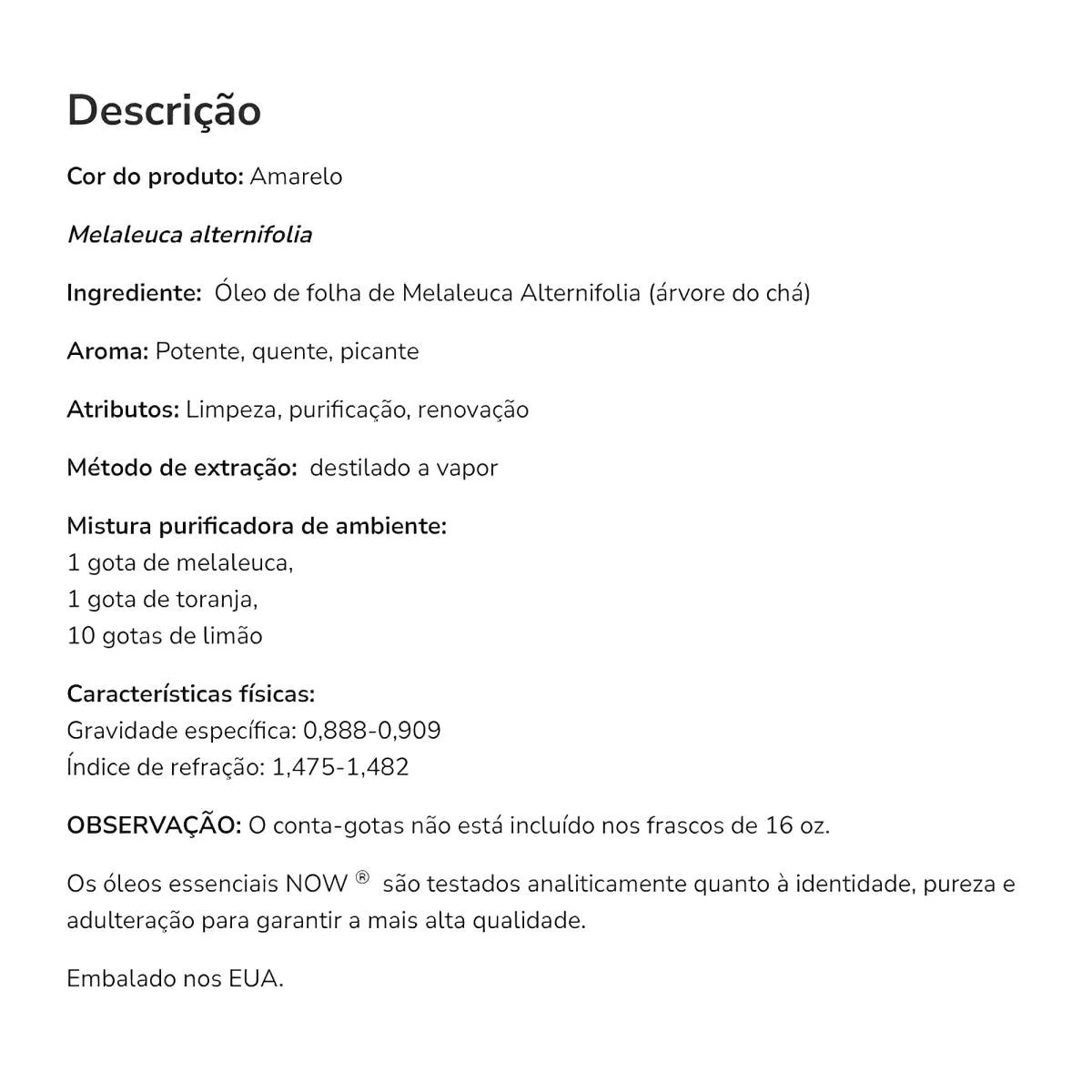 - Óleo essencial 100% puro de Melaleuca alternifolia.
