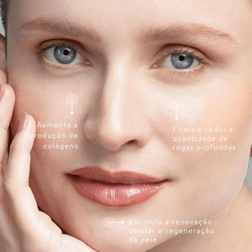 • Devolve a firmeza e reduz a profundidade e quantidade de rugas em 1 semana