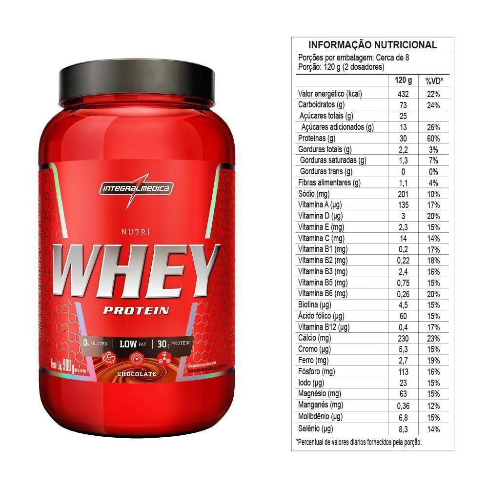 NUTRI WHEY PROTEIN é um hiperprotéico e hipercalórico, composto por um blend de proteínas e de carboidratos. É eficiente principalmente em estratégias para ganhos de força e massa muscular, acelerando também o processo de recuperação através da sua grande quantidade de proteína por dose. Resumindo, se você procura por um hipercalórico com uma grande quantidade de proteína por dose para acelerar seus ganhos de força e massa muscular!INGREDIENTES:Maltodextrina, proteína concentrada do soro de leite, frutose, colágeno hidrolisado, albumina desidratada, proteína isolada do soro de leite, mix de minerais [cálcio (fosfato de cálcio tribásico anidro), fósforo (fosfato de cálcio monobásico mono-hidratado), magnésio (sulfato de magnésio mono-hidratado), ferro (ferro reduzido), flúor (fluoreto de sódio anidro), manganês (sulfato de manganês mono-hidratado), iodo (iodeto de potássio), molibdênio (molibdato de sódio di-hidratado), cromo (dinicotinato glicinato de cromo) e selênio (selenito de sódio)], mix de vitaminas [C (ácido ascórbico), B3 (nicotinamida), E (acetato de tocoferol), B5 (pantotenato de cálcio), B2 (riboflavina), B6 (piridoxina) e B1 (tiamina mononitrato), A (palmitato de retinol), B9 (ácido fólico), H (biotina), D (colecalciferol), B12 (cianocobalamina)], aroma idêntico ao natural, ácido cítrico (acidulante), sucralose (edulcorante) e bordeaux (corante artificial). Glutén: Não Contém | Lactose: Contém | Tamanho: 907g | unitCount: 1 unidade | Data de validade: 06/10/2023 | ingredients01: Maltodextrina, proteína concentrada do soro de leite, frutose, colágeno hidrolisado, albumina desidratada, proteína isolada do soro de leite, mix de minerais [cálcio (fosfato de cálcio tribásico anidro), fósforo. | Formato do : Pó