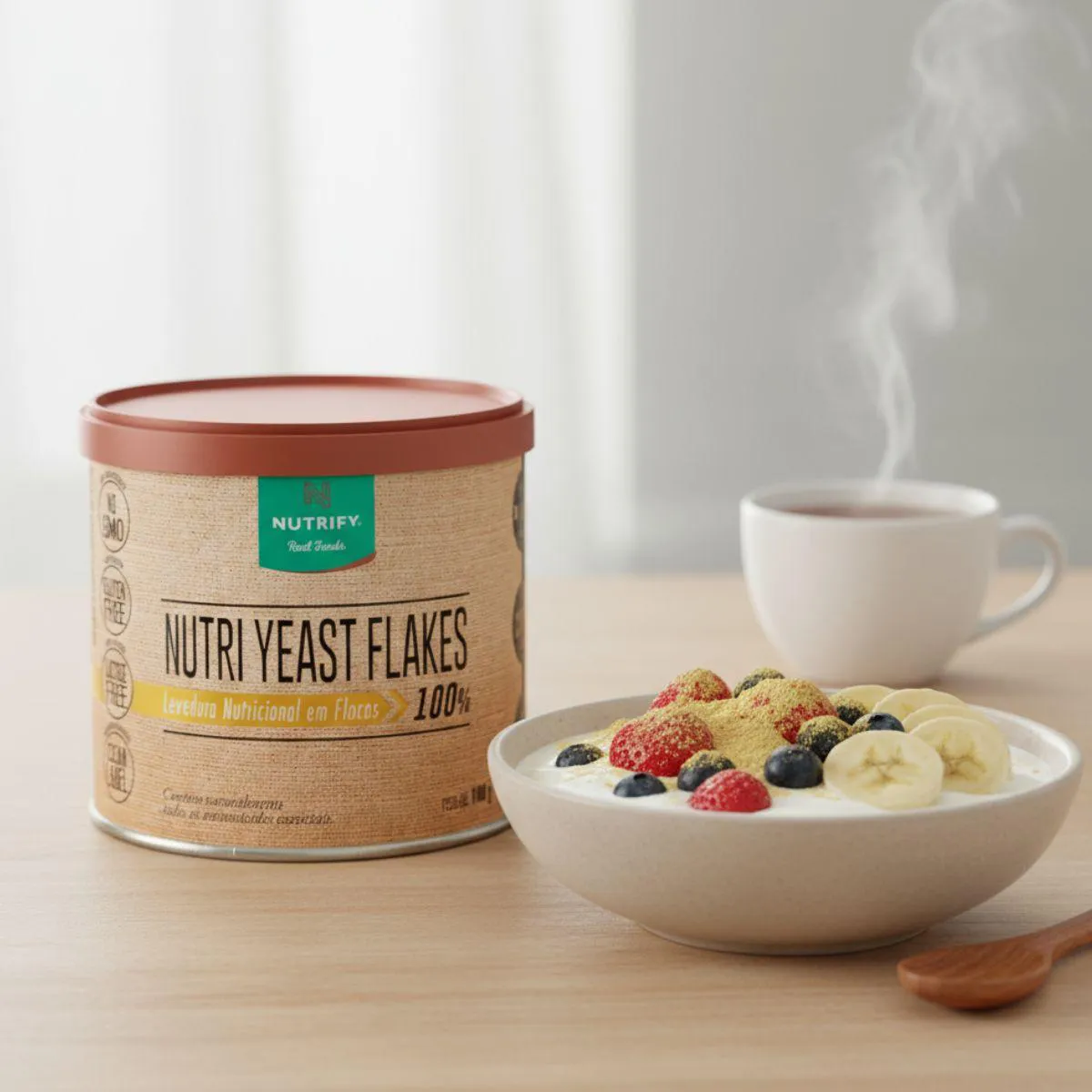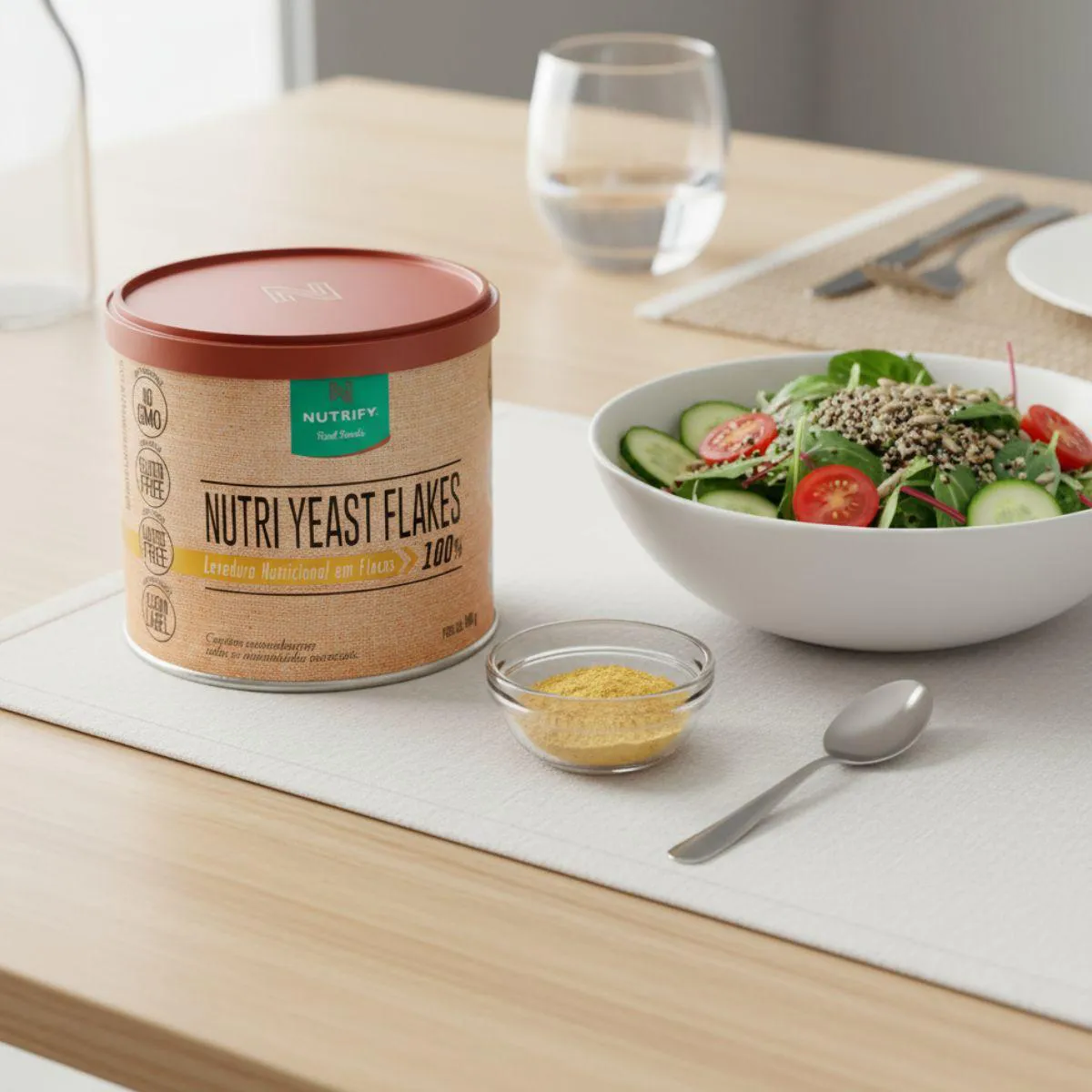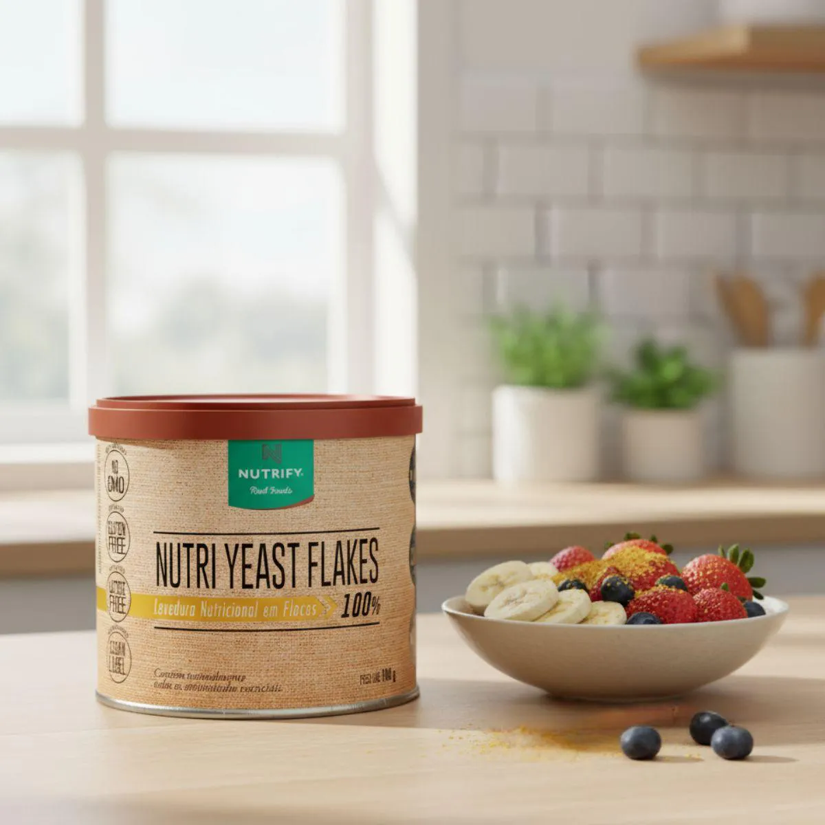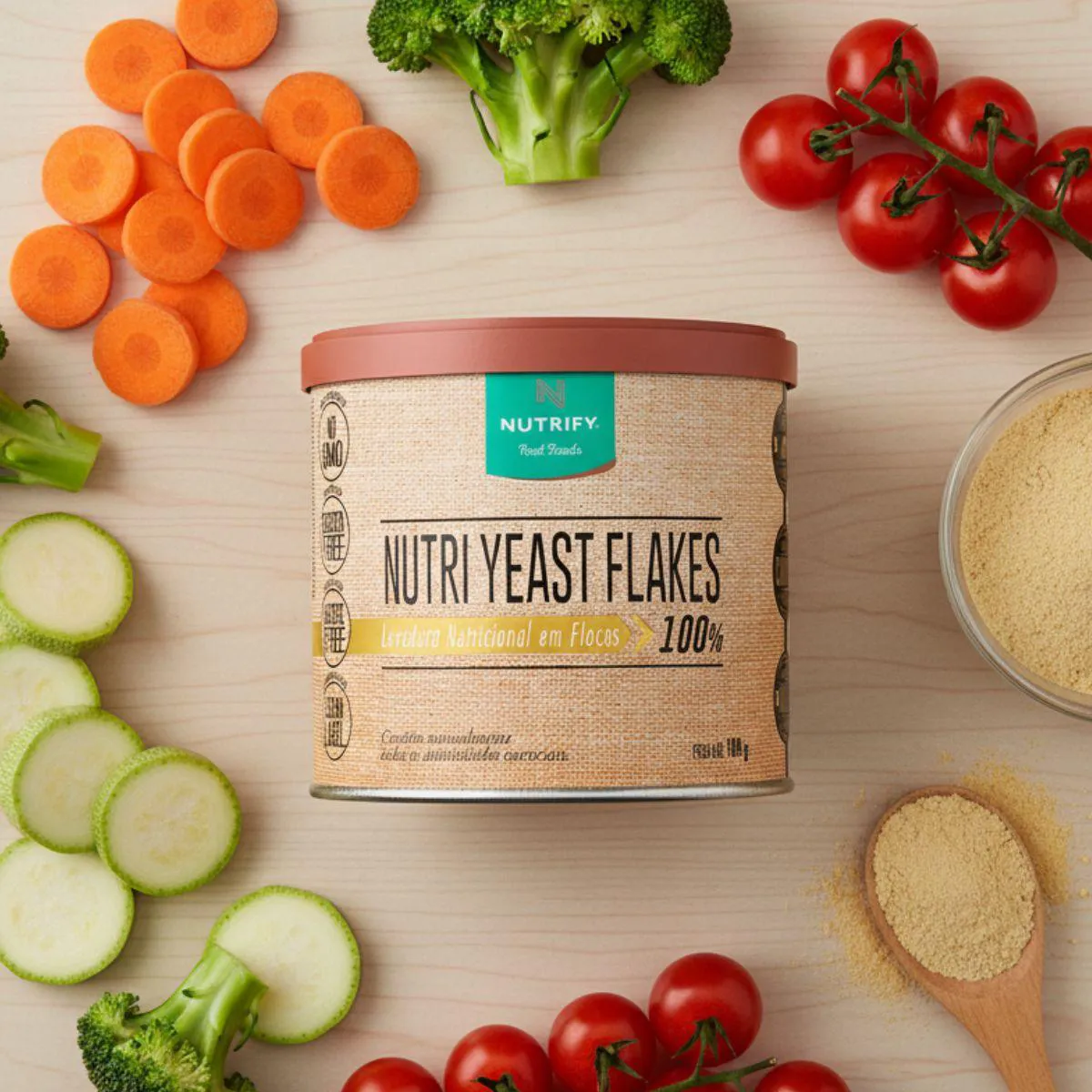 Os Nutri Yeast Flakes são um ingrediente alimentício composto por levedura nutricional pura em flocos, com textura leve e sabor neutro, produzido pela marca Nutrify. Trata-se de um produto natural, sem aditivos artificiais, apresentado em uma embalagem compacta de 100g.
