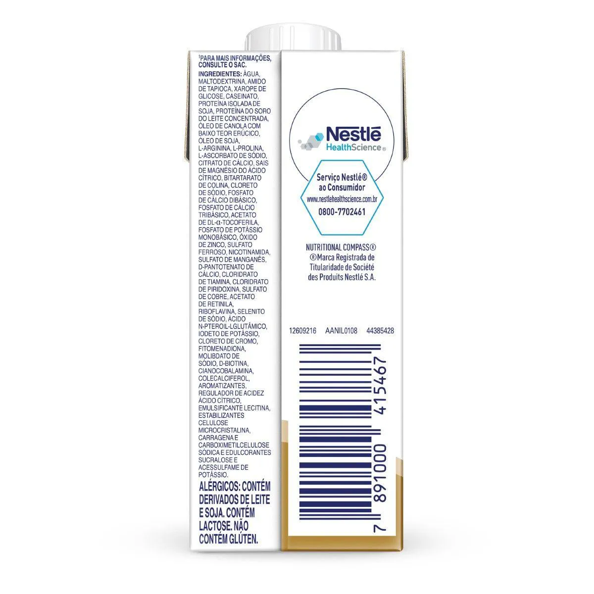 Fórmula enteral hiperproteica, com densidade energética alta, adicionado de arginina e prolina. Com alto teor de zinco, selênio, vitaminas A, E e C. Sem adição de sacarose.