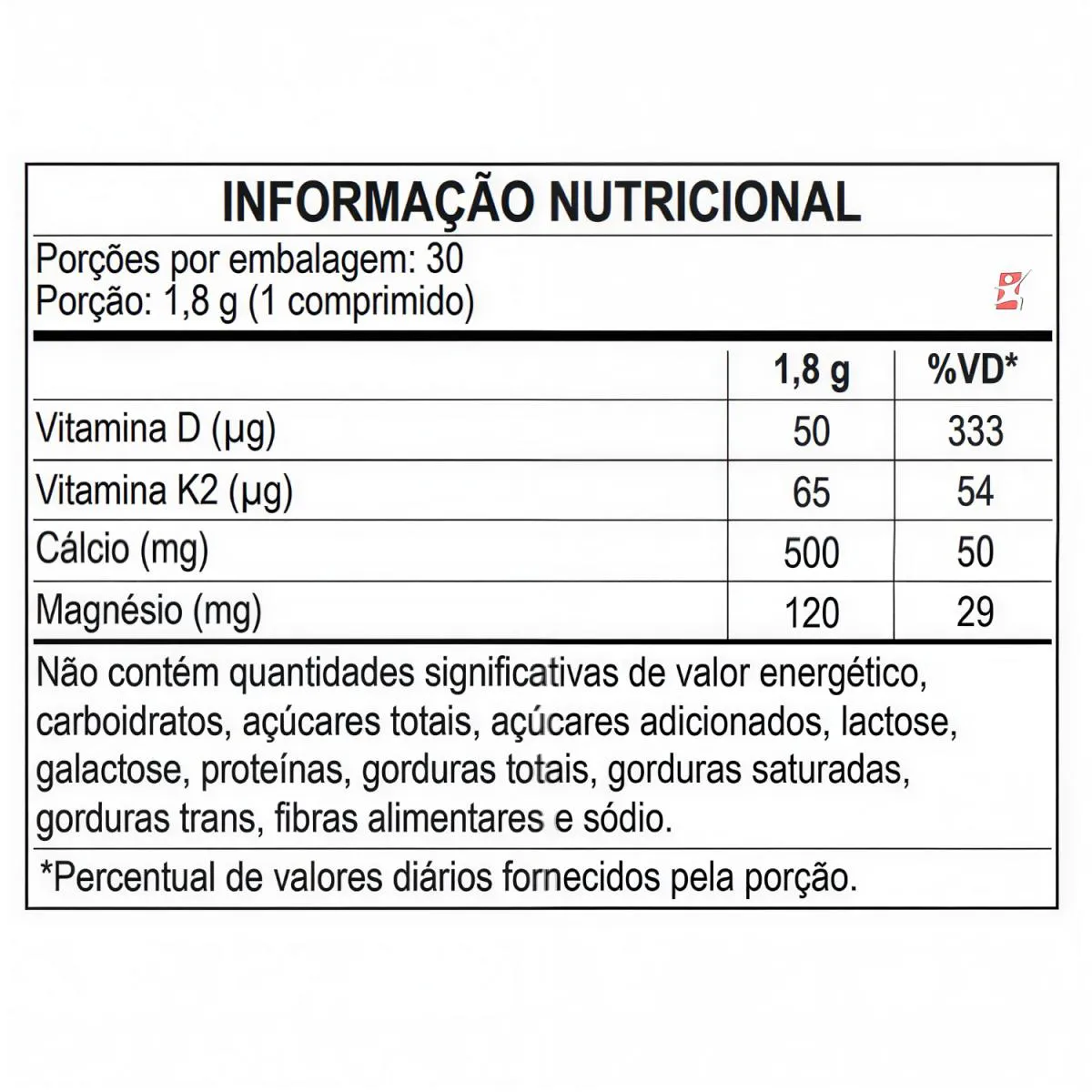 DESCRIÇÃO A deficiência de cálcio é um problema sério, com consequências que vão além de ossos fracos. Ela pode levar a fraquezas musculares, problemas cardíacos, osteoporose e até mesmo fraturas graves, como a do fêmur, que pode ser fatal em muitos casos, especialmente em idosos. Pensando nisso, desenvolvemos o NUTRIDAILY CÁLCIO MDK. Com uma fórmula rica em cálcio, magnésio, vitamina D3 e K2, ele oferece uma solução completa para fortalecer seus ossos, prevenir doenças e garantir uma vida mais longa e saudável. Foco na saúde óssea. Com o NUTRIDAILY CÁLCIO MDK, você garante uma estrutura óssea mais forte e saudável. Nossa fórmula completa, rica em cálcio, magnésio, vitamina D3 e K2, ajuda a: - Auxiliar a prevenir a osteoporose: Mantendo seus ossos densos e resistentes. - Auxiliar a reduzir o risco de fraturas: Especialmente em idosos. - Auxiliar a acelerar a recuperação: Auxiliando na cicatrização de ossos. - Foco na saúde em geral. Além de fortalecer os ossos, o NUTRIDAILY CÁLCIO MDK contribui para a sua saúde de forma geral. Com ele, você terá: - Imunidade mais forte: Protegendo seu corpo contra doenças. - Mais energia: Para realizar suas atividades do dia a dia. - Auxliar na melhora na qualidade do sono: Descanse melhor e acorde mais disposto. SUGESTÃO DE USO Ingerir 1 (uma) comprimido, preferencialmente antes ou após as principais refeições. Recomendação de uso: 19 (dezenove) anos ou acima. INGREDIENTES Carbonato de cálcio, óxido de magnésio, maltodextrina, menaquinona-7 (MK7), colecalciferol, estabilizante: croscarmelose sódica, agente de massa: celulose microcristalina e antiumectantes: estearato de magnésio e dióxido de silício. NÃO CONTÉM GLÚTEN. RECOMENDAÇÕES ALÉRGICOS: PODE CONTER CEVADA, CENTEIO, TRIGO E AVEIA. - Este produto não é um medicamento. - Não exceder a recomendação diária de consumo indicada na embalagem. - Mantenha fora do alcance de crianças. - Este produto não deve ser consumido por gestantes, lactantes e crianças. - Manter a embalagem bem fechada e em local seco e fresco. Não expor à luz solar. - Não consuma o produto com o prazo de validade vencido.