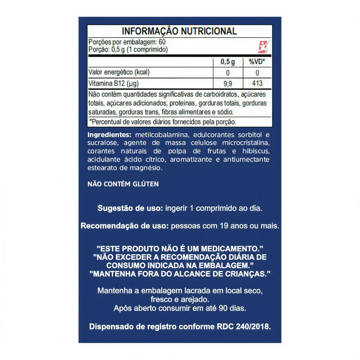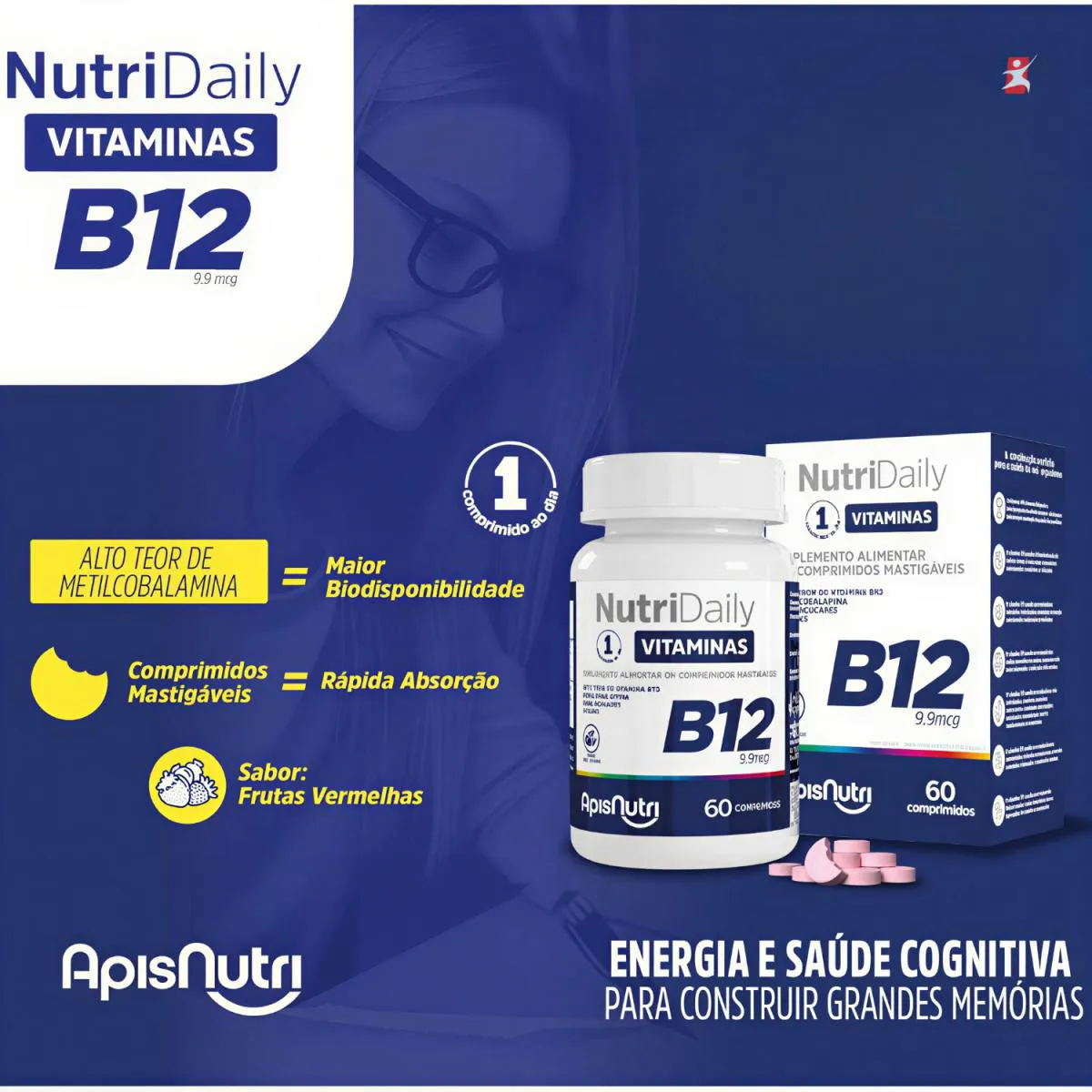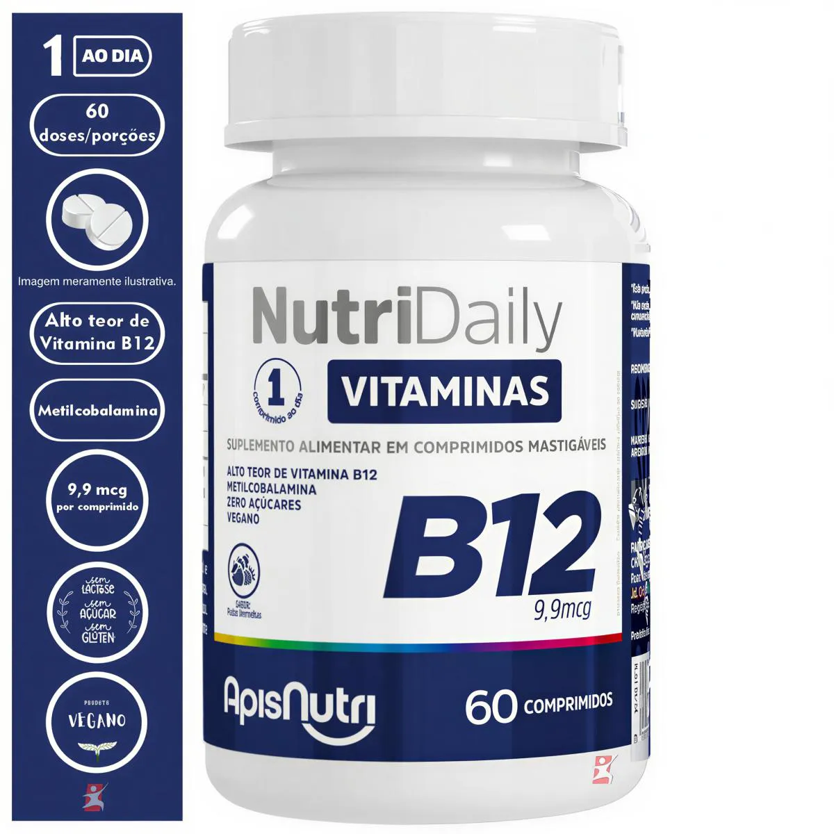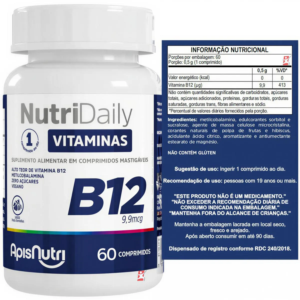 NUTRIDAILY VITAMINA B12 METILCOBALAMINA 60 COMPRIMIDOS MASTIGAVEIS FRUTAS VERMELHAS – APISNUTRI Total – 60 comprimidos POR FRASCO.