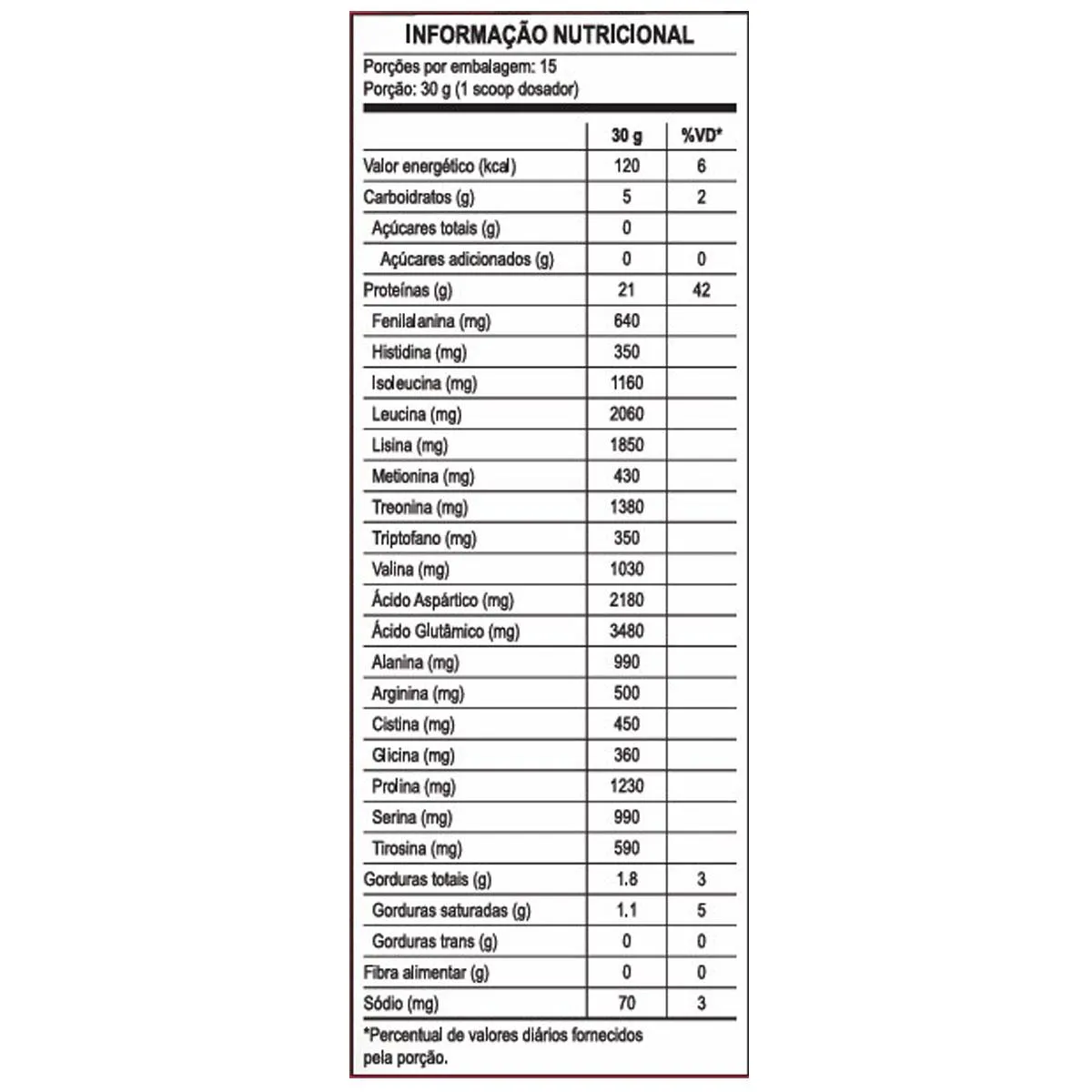 - Suplemento alimentar em pó com 21g de proteína por porção.