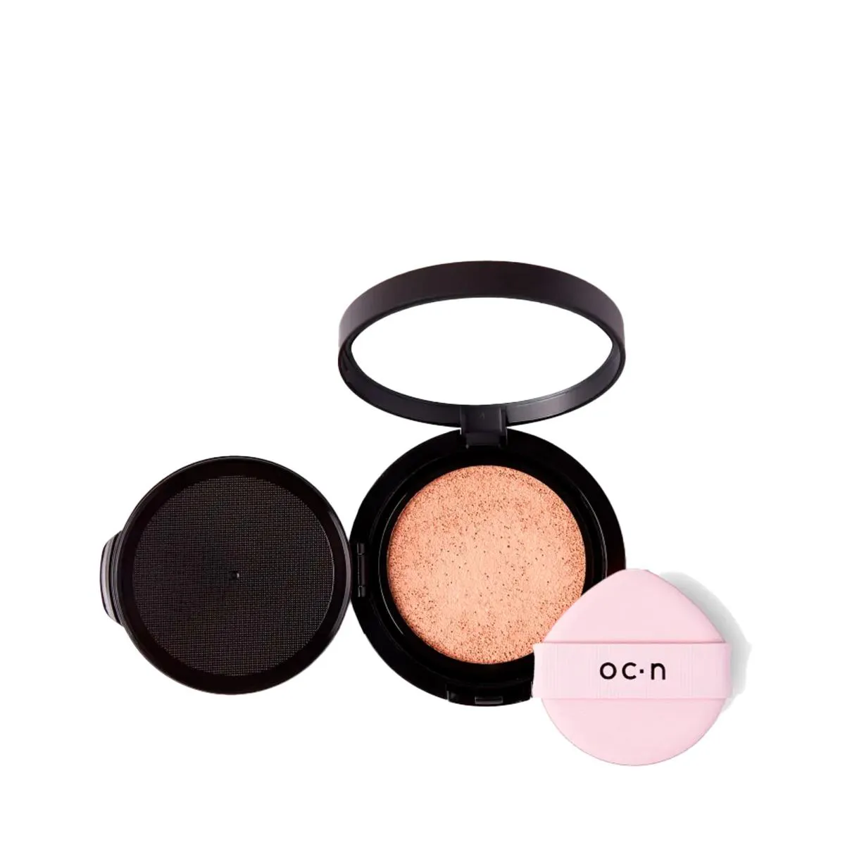 A Base Cushion Foundation Océane Edition 12g - . Sua fórmula vegana, com vitamina E, ácido hialurônico e extratos botânicos, nutre a pele enquanto uniformiza o tom. O formato cushion com esponja macia e espelho embutido garante aplicação sem desperdícios e retoques fáceis.