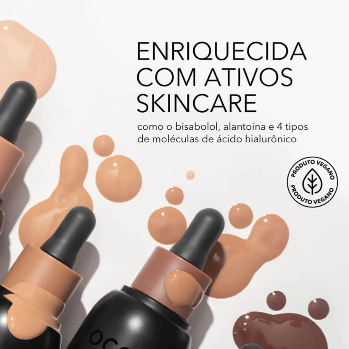 A base Fluida é indicada para as peles mais claras, a Skin Tint possui uma textura fluida que entrega uma cobertura leve, mas que aceita super bem a construção de camadas. Sua fórmula vegana e Cruelty free possui ativos como bisabolol, alantoína e 4 tipos de moléculas de ácido hialurônico. A Skin Tint é a base fluida para você chamar de sua! E são vários motivos para usá-la, quer ver? Vamos começar falando do seu acabamento natural, que deixa sua pele simplesmente assim: maravilhosa! Essa base líquida possui uma textura fluida que entrega uma cobertura leve, mas que aceita super bem a construção de camadas. E mais: melhora a aparência dos poros e, por isso mesmo, o produto cai bem para pessoas de todas as idades, incluindo quem tem pele madura. Os benefícios vão além! Sua fórmula traz ativos como bisabolol, alantoína e 4 tipos de moléculas de ácido hialurônico. E o que ela faz? Vai ajudar a manter sua pele hidratada, o que garante um resultado ainda mais bonito. O produto ainda vem com proteção FPS 30 PA +++ contra raios UVA e UVB, afinal, nada melhor do que usar uma base que intensifica seu skincare. E o cheiro? É bem suave, quase imperceptível, para que a experiência seja ainda mais confortável. Os Tons correspondem ao mesmo tom na Base Skin Foundation, ou seja, é a opção que combina com os tons de pele mais claros. Assim, é possível ter uma make uniforme sem pesar, deixando um toque confortável. Ah, além de todos esses benefícios, sua fórmula também é vegana. Resumindo: a base Skin Tint vai ser sua bestie para o que der e vier!
