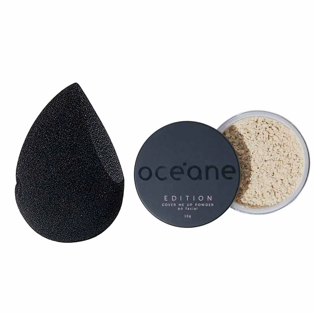 Descubra o poder do Océane Kit, que combina o aclamado Pó Solto Facial Translúcido Cover Me Up Powder Edition com a inovadora Esponja de Maquiagem Flat Drop.