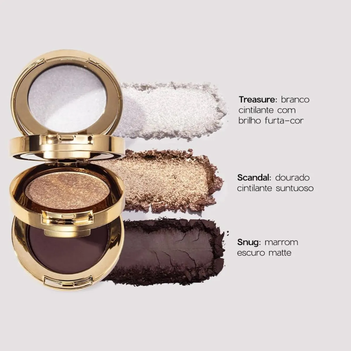 A collab entre a Rainha do Glow e a Océane sempre foi um sucesso e esta paleta de sombras não poderia ser diferente. Afinal, ela tem tudo o que amamos em uma maquiagem dos Olhos: beleza, sofisticação e muito brilho! A 3 To Go Palette Jewel é um trio de sombras que combina dois cintilantes glamourosos com um tom matte super sofisticado que dá profundidade ao visual. Conheça de perto as cores e descubra como elas vão te ajudar a criar uma Maquiagem poderosa: