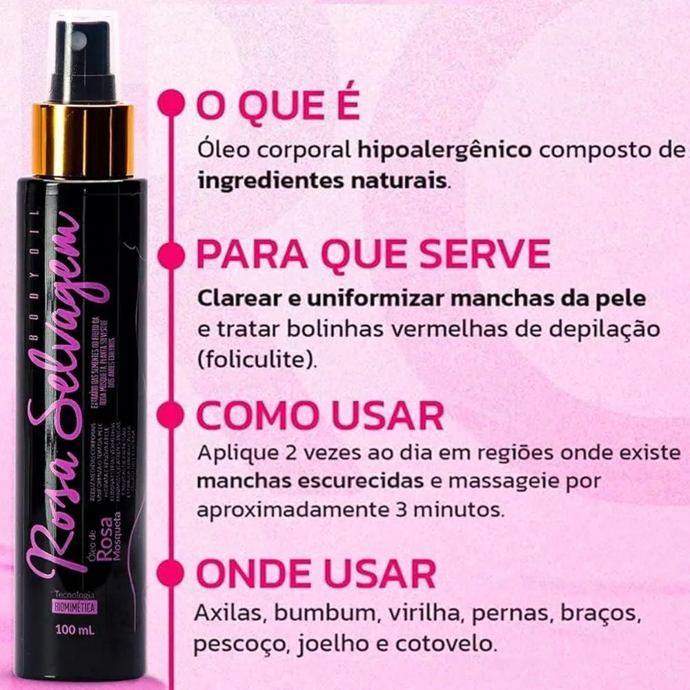 Oleo Clareador de Pele Rosa Selvagem Rosa Mosqueta 100Ml