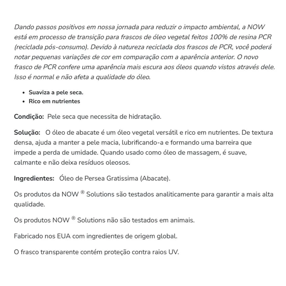 1. O que é o Óleo de Abacate Now Foods