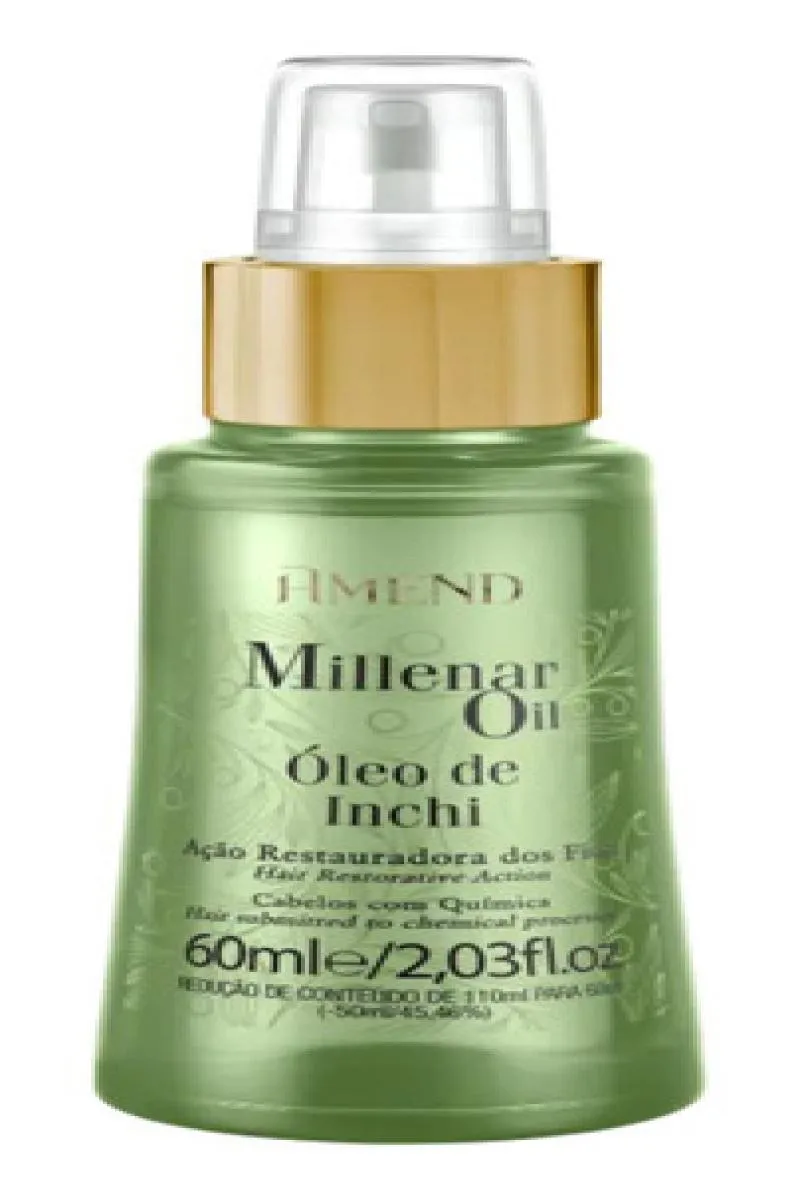 Somos a BUTIQUE DA BELEZA Uma empresa especializada no comércio de cosméticos e Semijoias. Estamos sempre entre os Melhores Vendedores. NOSSO COMPROMISSO É COM VOCÊ! SEU CONFORTO E SEGURANÇA SÃO NOSSOS PROPÓSITOS SERVIR E AJUDAR SÃO NOSSOS DEVERES ÓLEO DE INCHI MILLENAR OIL SEGREDOS DO MUNDO AMEND Óleo restaurador ideal para cabelos quimicamente tratados, após alisamento, relaxamento ou coloração dos fios. O Óleo de Inchi Millenar Oil Segredos do Mundo Amend é extraído de uma semente peruana utilizada em segredo há milênios pelo povo Inca que vivia nos alpes andinos. Sua fórmula extra nutritiva, restaura a camada lipídica perdida, deixando seus cabelos mais resistentes, brilhantes e maleáveis, além de proteger do calor da prancha e do secador. ATIVOS - Óleo de Inchi INDICADO - Cabelos com Química. - Cabelos Coloridos. - Cabelos Descoloridos. - Cabelos com Relaxamento. - Cabelos Danificados. - Todos os Tipos de Cabelos. BENEFÍCIOS - Restauração dos Fios Danificados. - Nutrição Intensa. - Resistência. - Brilho. - Maleabilidade. - Proteção Térmica. MODO DE USO Aplique nos fios úmidos ou secos e finalize como desejado.