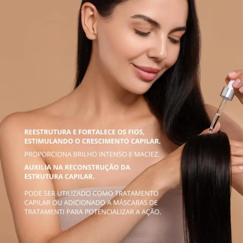 Ação antioxidante: Combate os radicais livres, prevenindo o envelhecimento precoce dos fios.