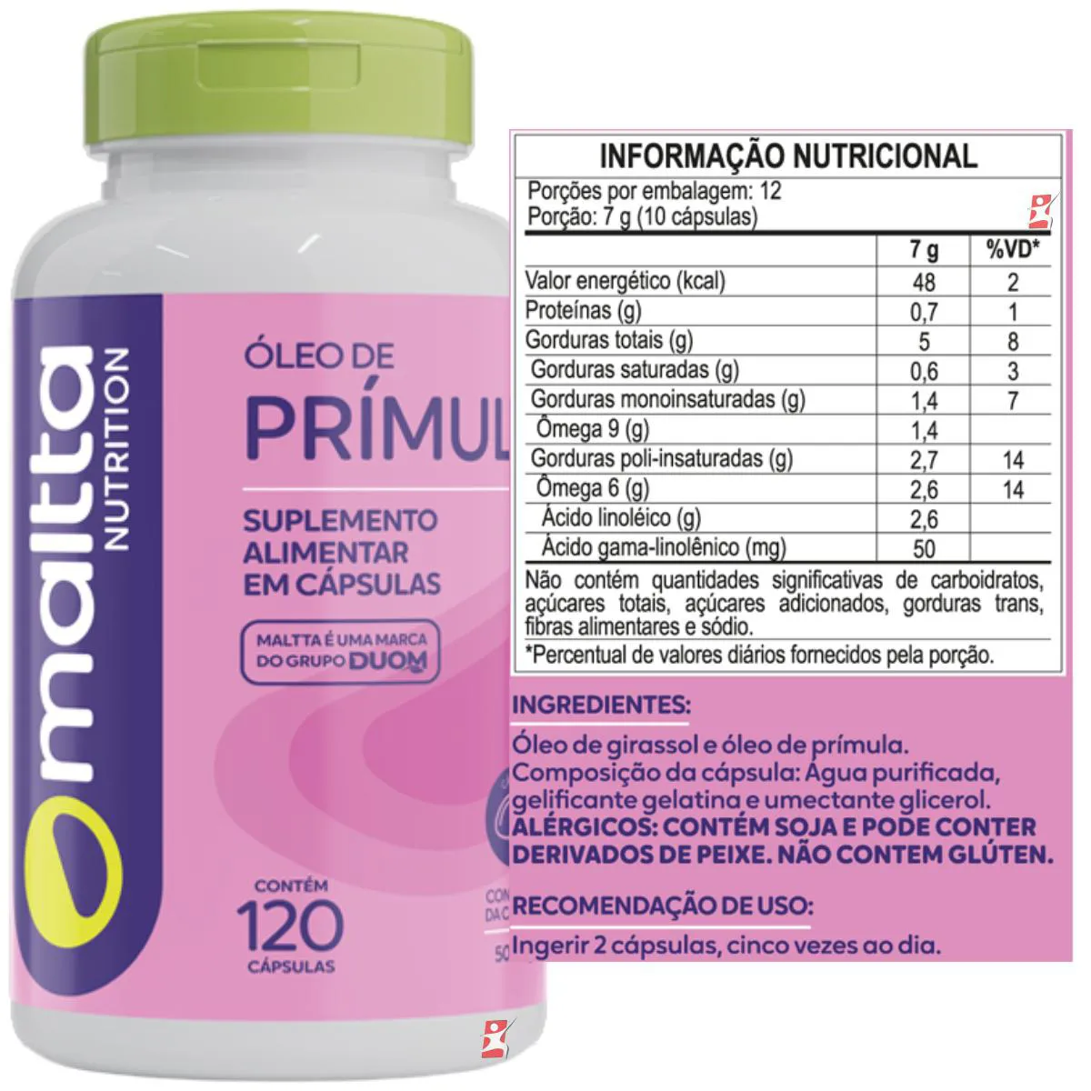- 1 Unidade do produto: ÓLEO DE PRÍMULA A SAÚDE DA MULHER E CÁPSULA DA BELEZA 120 CAPS – DUOM: MALTTA NUTRITION.