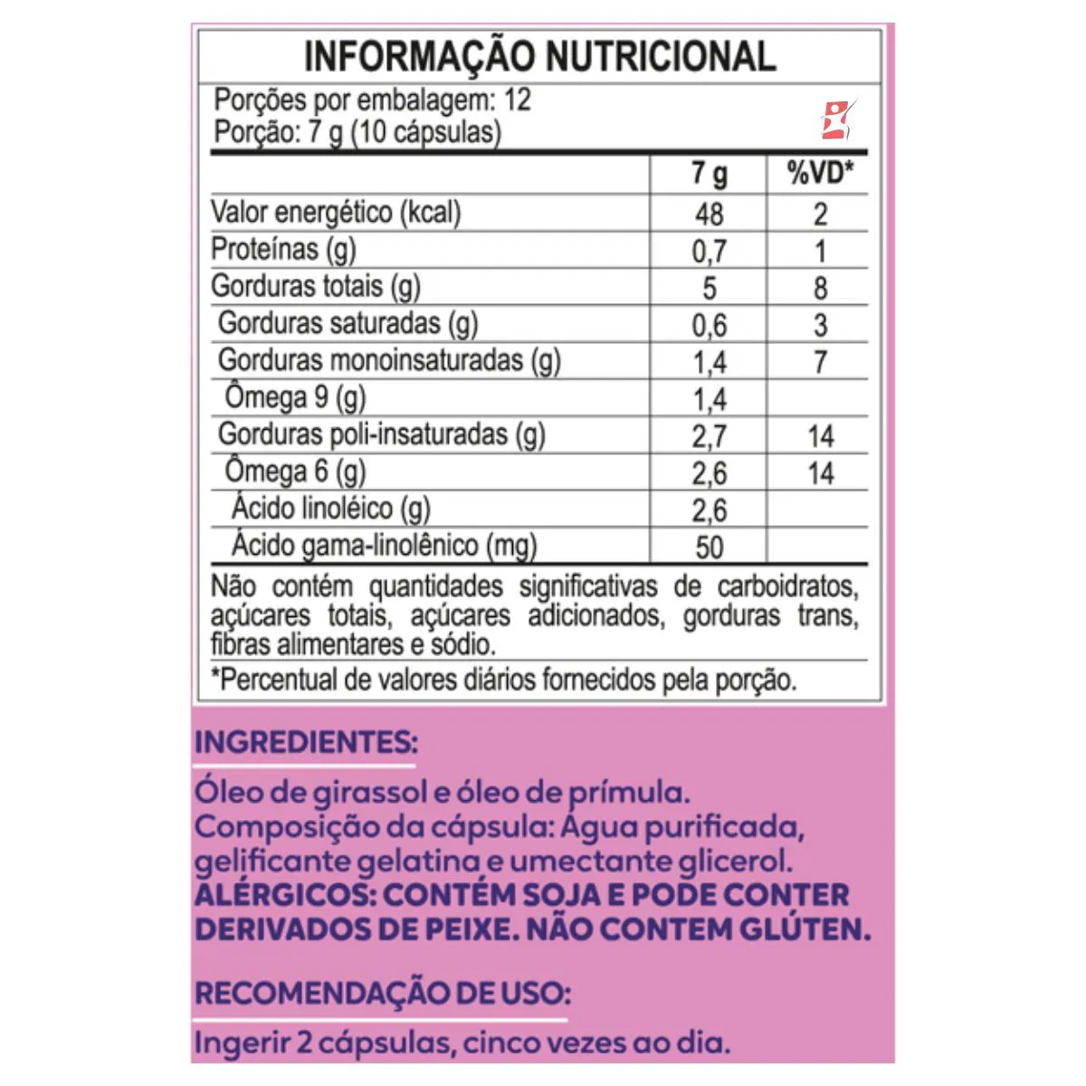 - Contém ácido gama-linolênico (GLA) anti-inflamatório.