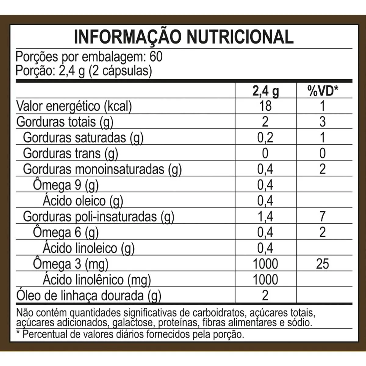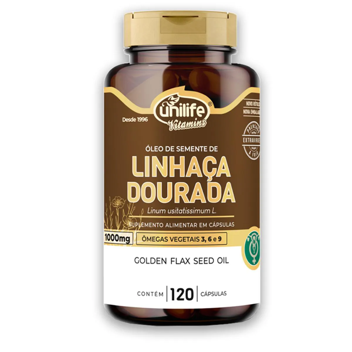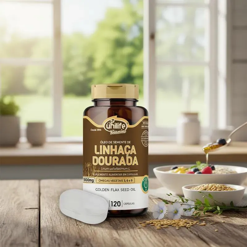 - Suplemento com óleo de semente de linhaça dourada.