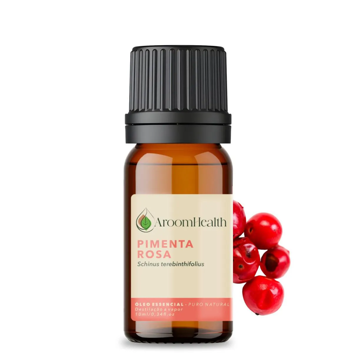 Óleo essencial puro natural de Pimenta Rosa – 10 ml AroomHealthNome botânico: Schinus terebinthifoliaOrigem: BrasilExtração: Destilação a vaporParte utilizada: FrutaProduto vegano - Não testado em animaisVidro âmbar – Gotejador- tampa lacre – validade 2 anos (vide rótulo produto)