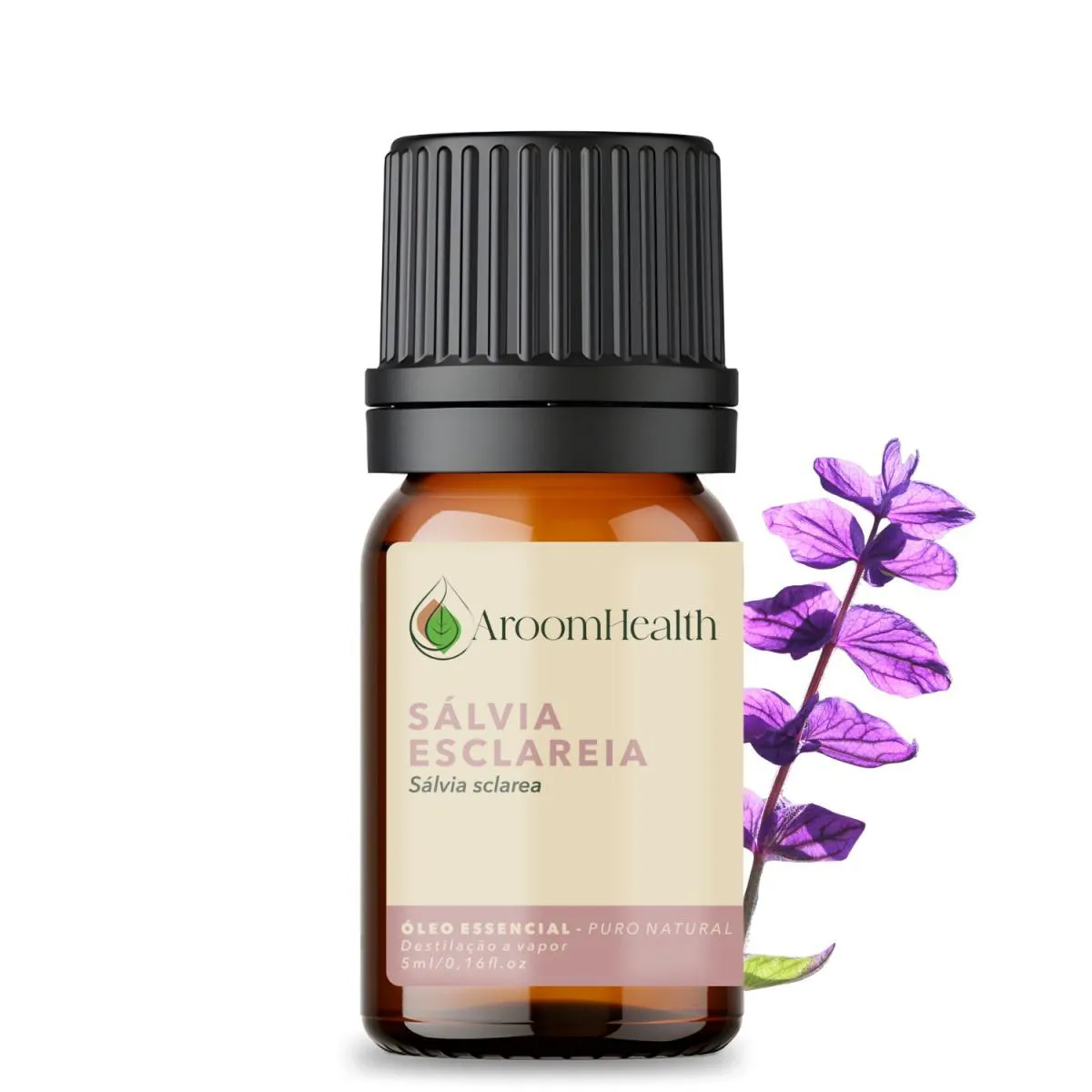 Óleo essencial puro natural de Sálvia Esclareia – 5 ml AroomHealth Nome botânico: Salvia sclareaOrigem: FrançaExtração: Destilação a vaporParte utilizada: Flores e folhasProduto vegano - Não testado em animaisVidro âmbar – Gotejador- tampa lacre – validade 2 anos (vide rótulo produto)