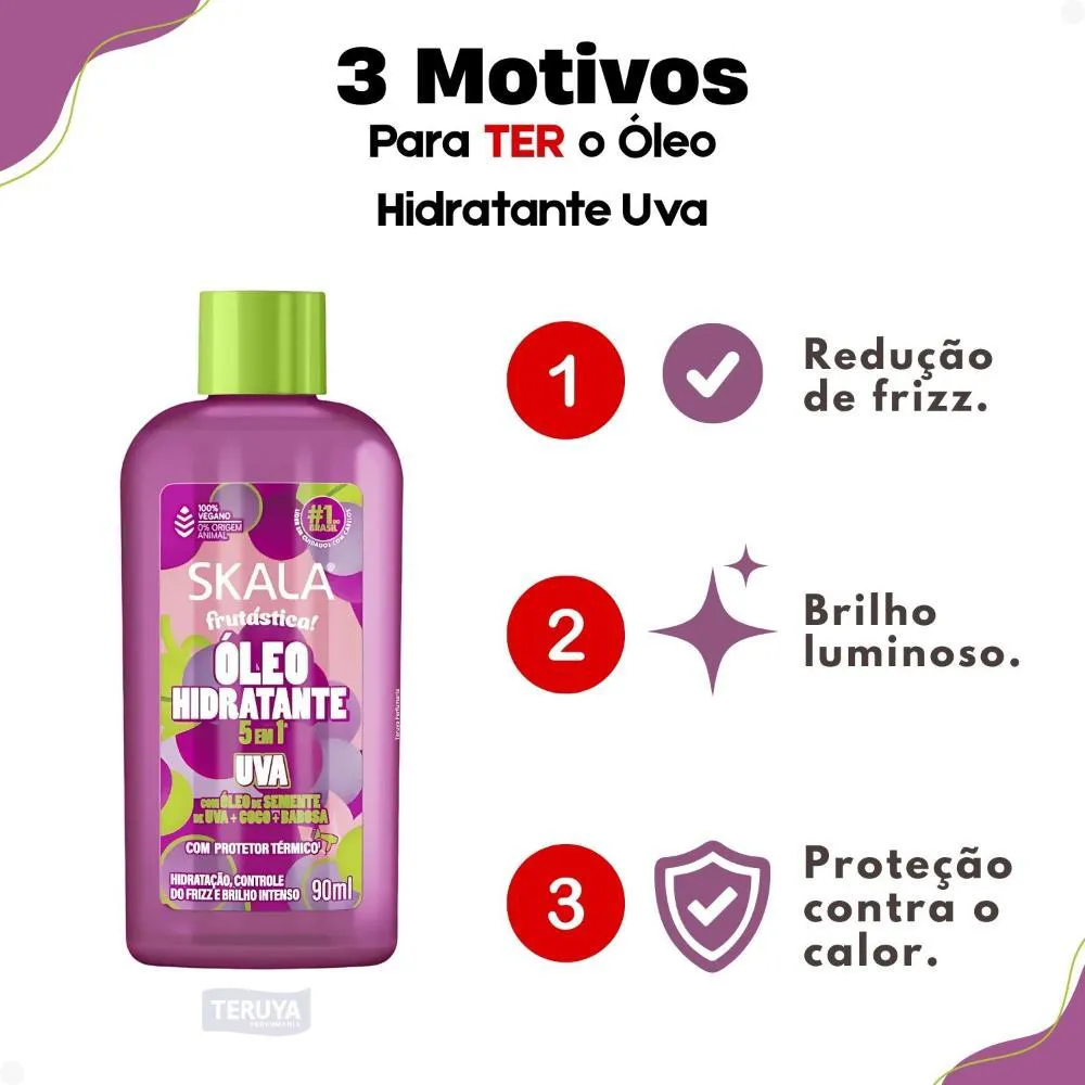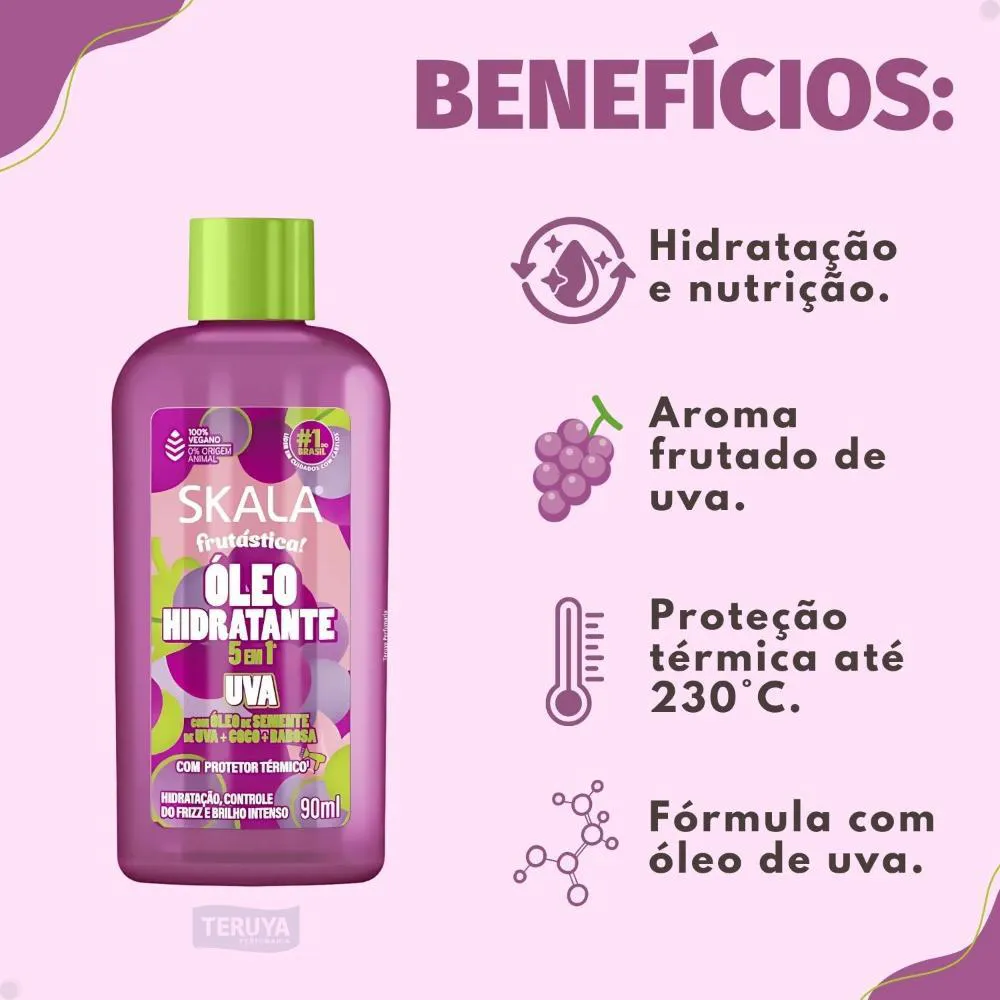 Óleo hidratante Skala 5 em 1 Uva Com Protetor Térmico 90ml: Cuidado Completo para Seus Cabelos