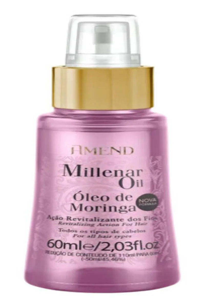 Somos a BUTIQUE DA BELEZA Uma empresa especializada no comércio de cosméticos e Semijoias. Estamos sempre entre os Melhores Vendedores. NOSSO COMPROMISSO É COM VOCÊ! SEU CONFORTO E SEGURANÇA SÃO NOSSOS PROPÓSITOS SERVIR E AJUDAR SÃO NOSSOS DEVERES ÓLEO DE MORINGA MILLENAR OIL SEGREDOS DO EGITO AMEND Óleo capilar de tratamento revitalizante ideal para todos os tipos de cabelos. O Óleo Amend Millenar Oil de Moringa Segredos do Egito possui propriedades que eram utilizadas por culturas antigas como romanos e egípcios por acreditarem que a árvore de moringa é milagrosa. O óleo de Moringa nutre intensamente os fios, tem textura leve, sendo rico em antioxidantes que ajudam a melhorar a aparência e o brilho dos cabelos, mesmo em cabelos mais finos, não sobrecarrega. ATIVOS - Óleo de Moringa INDICADO - Todos os Tipos de Cabelos. BENEFÍCIOS - Nutrição Intensa. - Revitalização dos Fios. - Ação antioxidante. - Brilho. MODO DE USO - Tratamento cosmético dos cabelos No mínimo uma vez por semana, aplique nos cabelos úmidos e limpos e deixe agir alguns minutos. Enxágue bem. - Pré-escova Aplique nos fios úmidos, limpos e inicie a escova. - Finalizador e protetor diário Aplique nos cabelos secos uma pequena quantidade por todo o cabelo, evitando a raiz, e penteie como de costume.