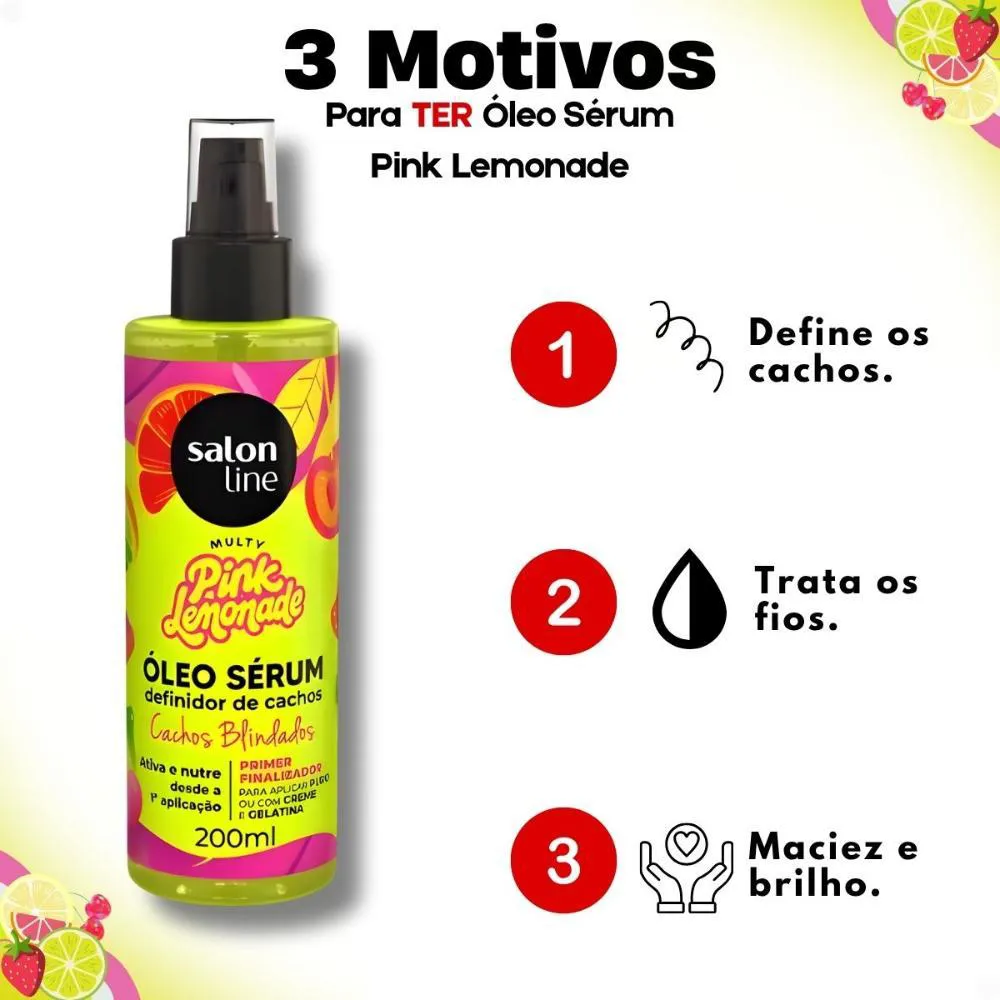 Descubra o poder do Óleo Sérum Capilar Salon Line Multy Pink Lemonade Definidor De Cachos 200ml, a solução perfeita para quem busca cachos definidos, nutridos e livres de