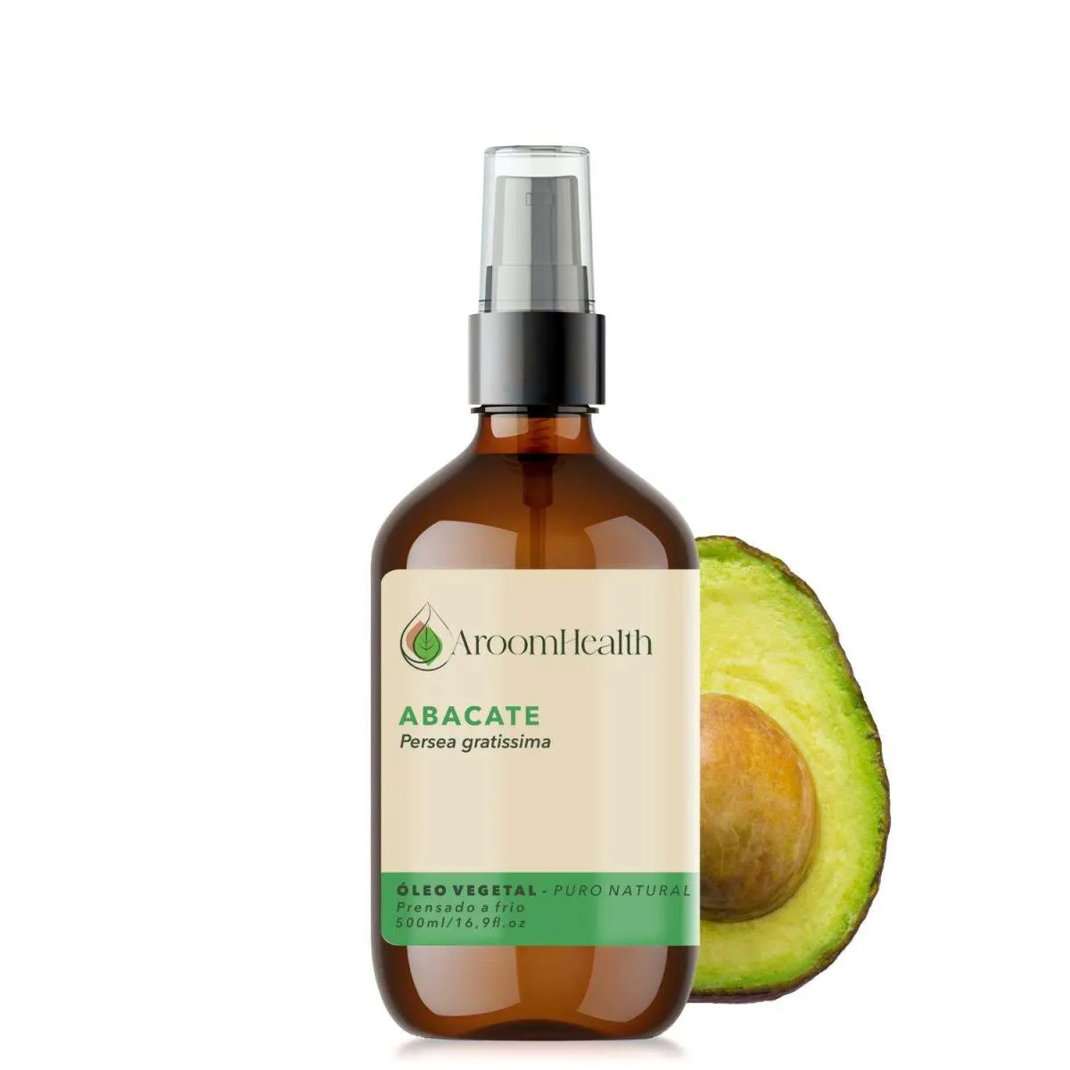 Óleo vegetal puro natural de Abacate - 500 ml AroomHealth Nome botânico: Persea gratissimaOrigem: BrasilExtração: Prensagem a frio Produto vegano – Não testado em animaisVidro âmbar com válvula pump dosadora, validade de 2 anos (verifique no rótulo). Óleos vegetais são gorduras extraídas das plantas, desodorizado e seu aroma é semelhando a de um óleo comum.