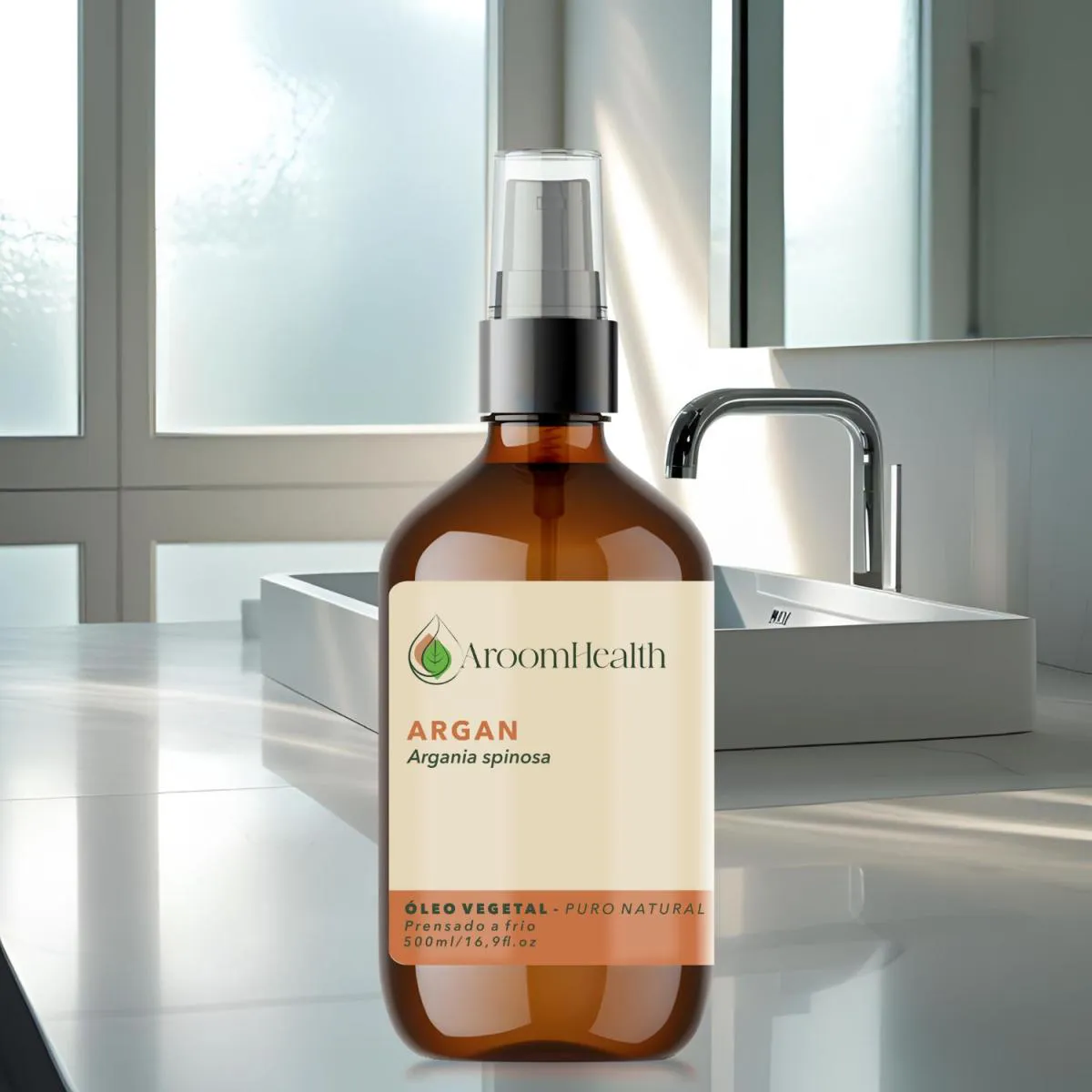 Óleo vegetal puro natural de Argan marroquino - 500 ml AroomHealth Nome botânico: Argania spinosaOrigem: MarrocosExtração: Prensagem a frio Produto vegano – Não testado em animaisVidro âmbar com válvula pump dosadora, validade de 2 anos (verifique no rótulo). Óleos vegetais são gorduras extraídas das plantas, desodorizado e seu aroma é semelhando a de um óleo comum.