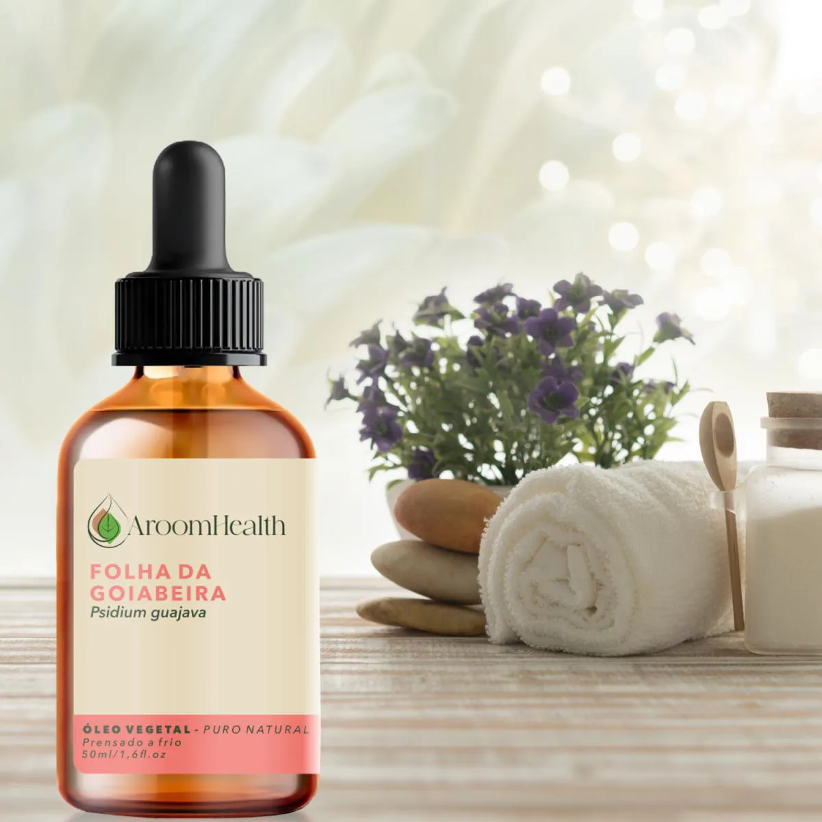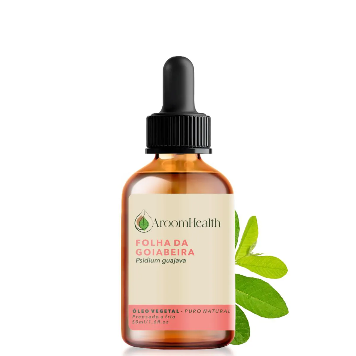 Óleo vegetal puro natural da folha da goiabeira - 50 ml AroomHealh Nome botânico: Psidium guajavaOrigem: BrasilExtração: Prensagem a frio Produto vegano – Não testado em animaisVidro âmbar com conta gotas, tampa lacre e validade de 2 anos (verifique no rótulo).Óleos vegetais são gorduras extraídas das plantas, desodorizado e seu aroma é semelhando a de um óleo comum.