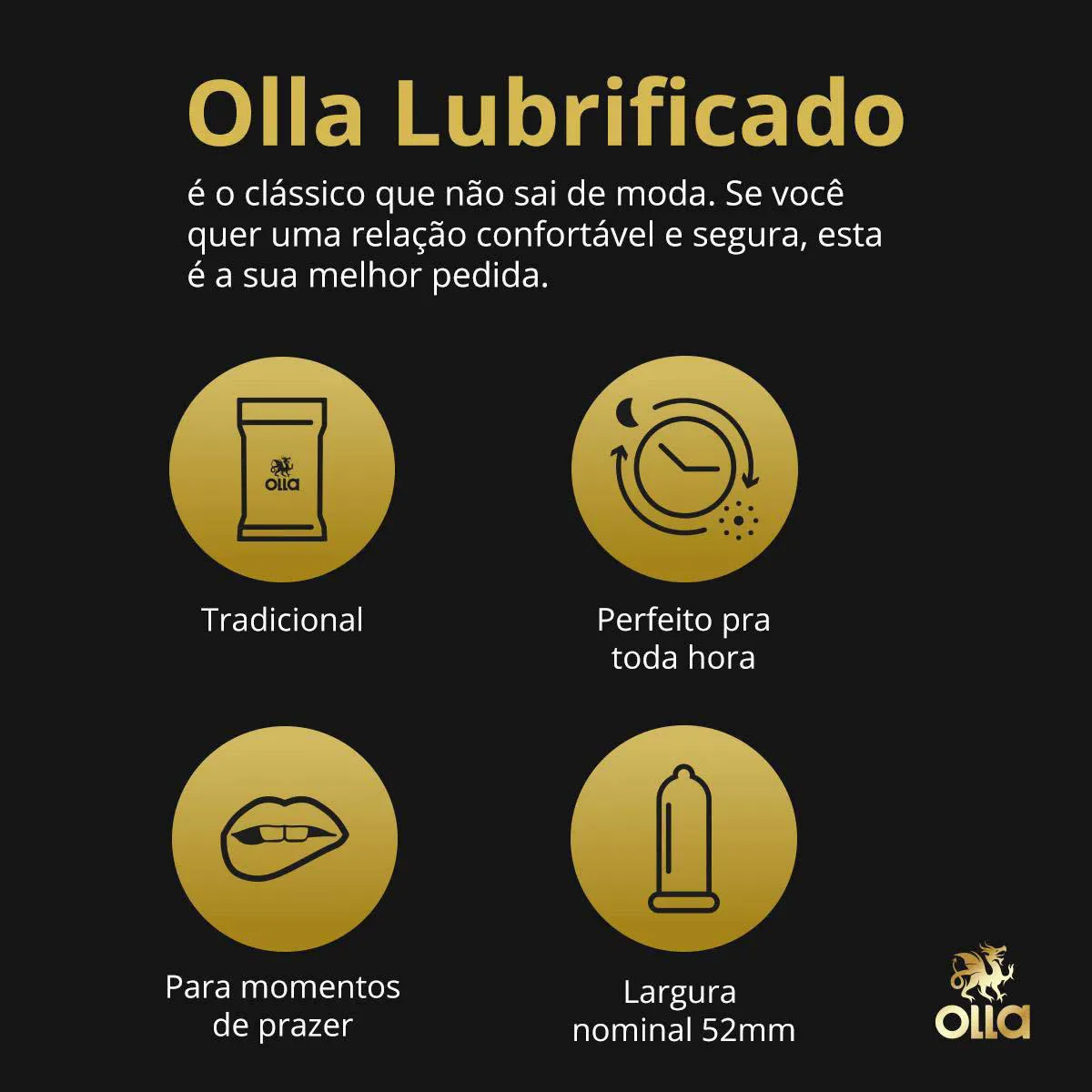 A Olla Lubrificado é uma camisinha masculina desenvolvida para promover uma experiência mais suave e confortável. Apesar de não possuir aroma e sabor, seu estilo clássico é lubrificado com óleo de silicone, que disfarça o cheiro do látex. Ainda conta com formato reto e textura lisa, para que o momento da penetração seja mais prazeroso e estimulante, sem perder a segurança.