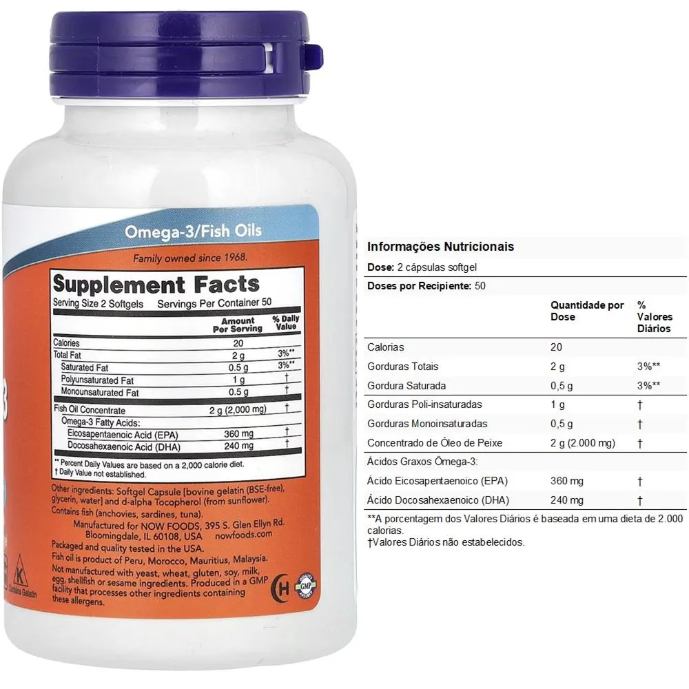 Ômega 3 100 Softgels NOW Foods 1000 mg