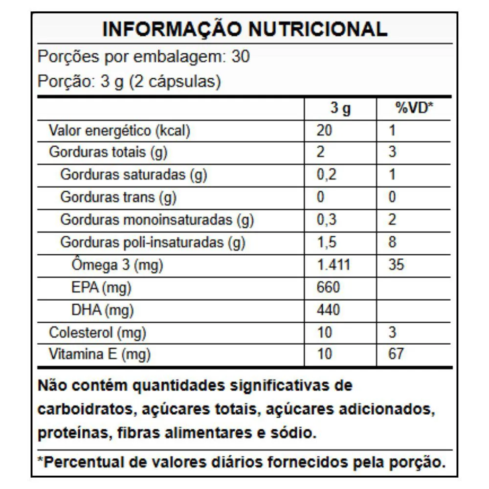 O Ômega 3 é um ácido graxo essencial que desempenha papel importante no equilíbrio geral, ajudando a manter o funcionamento saudável do corpo. A vitamina e atua como um forte aliado, protegendo o ômega 3 contra a perda de qualidade e preservando sua eficácia. O EPA auxilia na manutenção de processos naturais, promovendo bem-estar e equilíbrio, enquanto o DHA é fundamental para o desempenho adequado e a saúde geral. Essa formulação garante uma suplementação eficaz, que contribui para manter a disposição, o vigor e a qualidade de vida, ajudando a enfrentar os desafios do dia a dia de forma natural e eficiente. Essa combinação oferece uma suplementação de alta qualidade, que contribui para o bem-estar, melhora a vitalidade e promove uma proteção extra contra os efeitos naturais do tempo. Ideal para quem busca mais disposição e qualidade de vida de forma natural e eficaz.