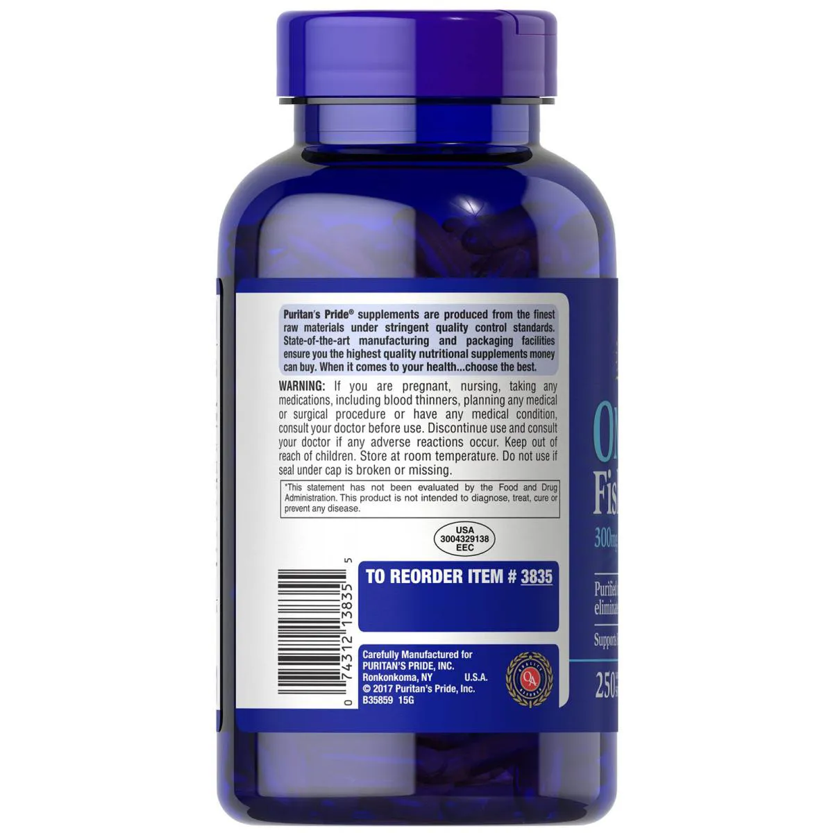 Omega-3 Fish Oil 1000Mg 250 Softgels - Puritan's Pride