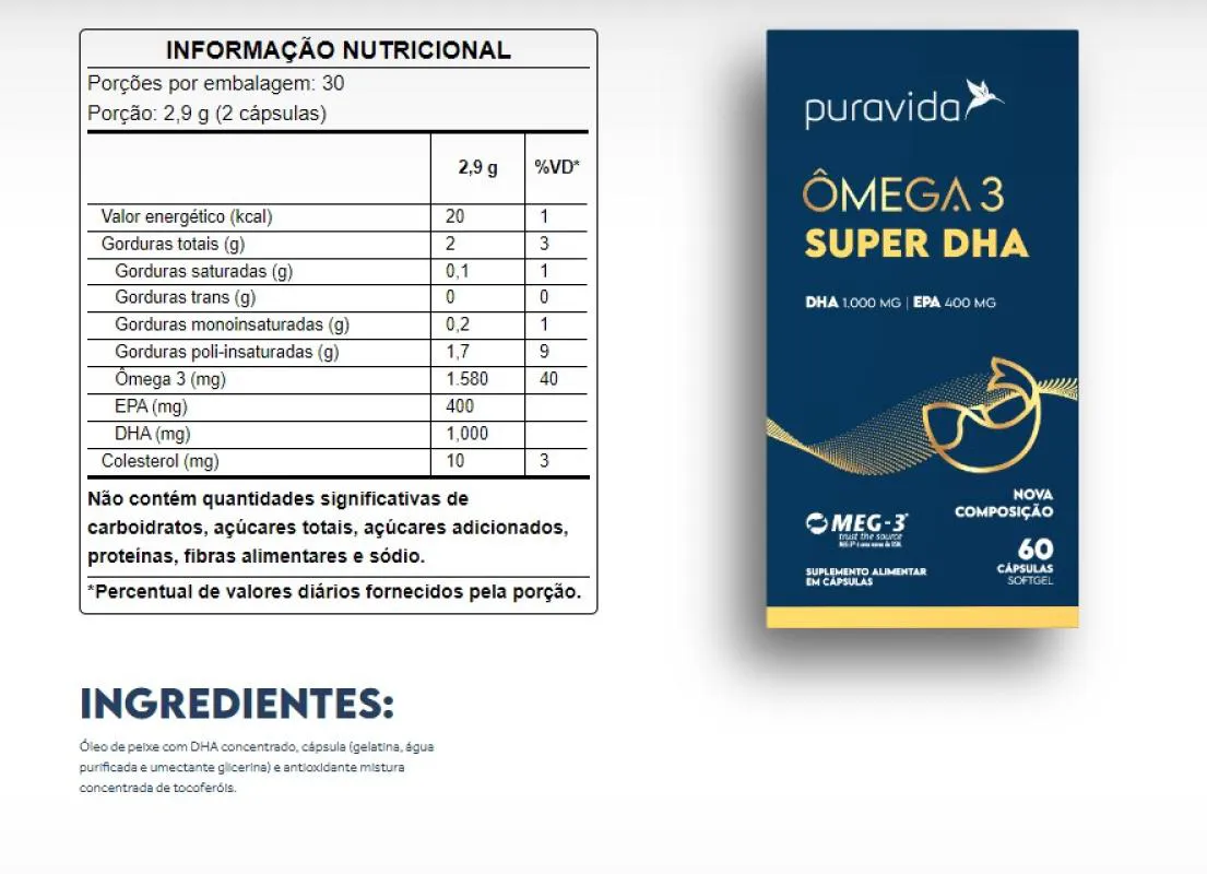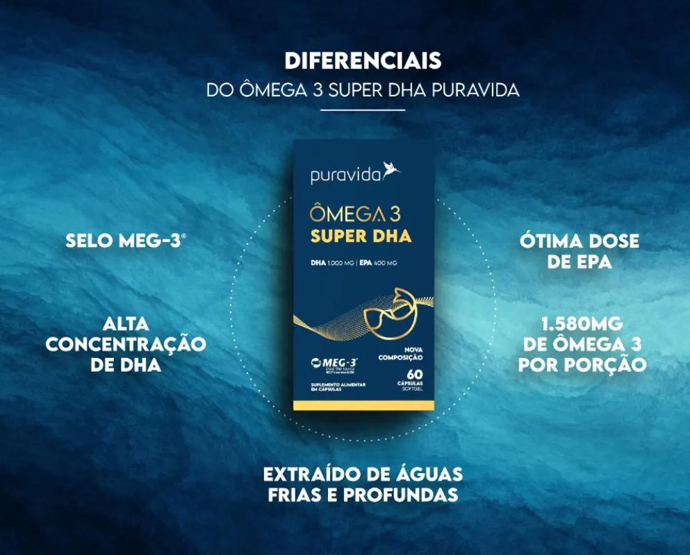 ÕMEGA 3 - SUPER DHA (1000MG DHA 400 EPA) - 60 CAPS - PURA VIDA