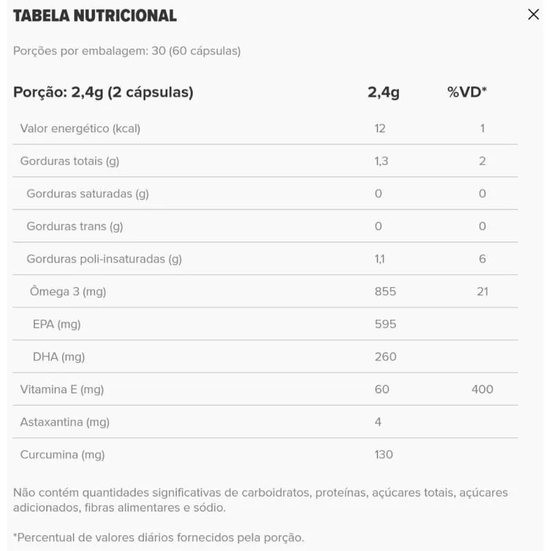 - Contém 595 de EPA e 260mg de DHA na porção;