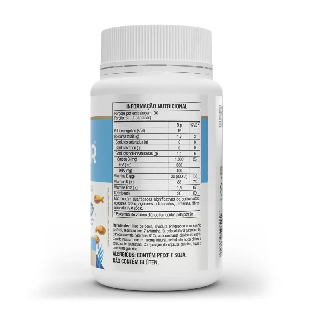 • Suplemento alimentar de óleo de peixe rico em Ômega 3.