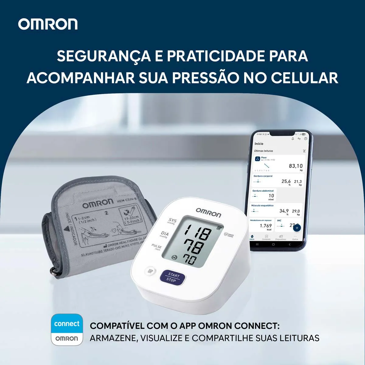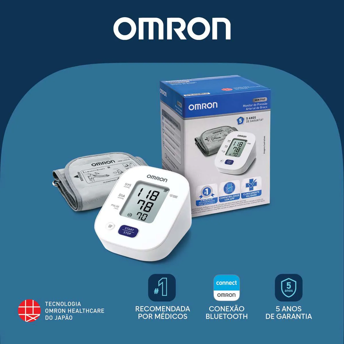 - Sincronização via Bluetooth com o aplicativo Omron Connect.