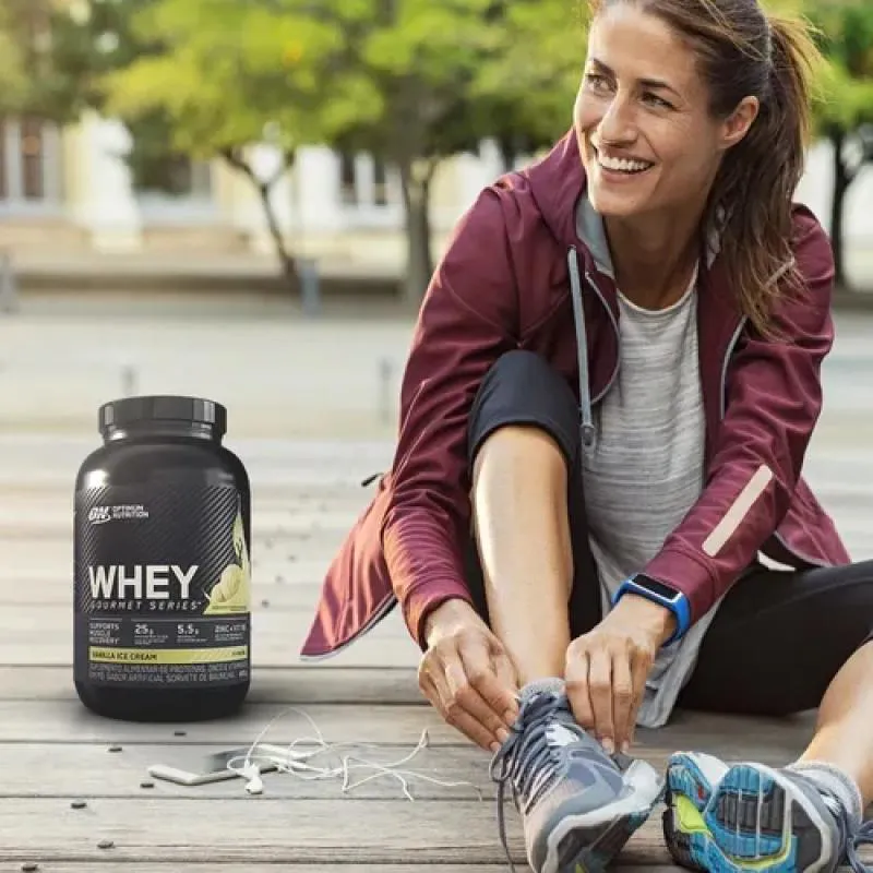 Uma a duas medidas de Whey Gourmet Optimum Nutrition misturado em um copo de água, leite ou conforme orientação de um profissional habilitado.