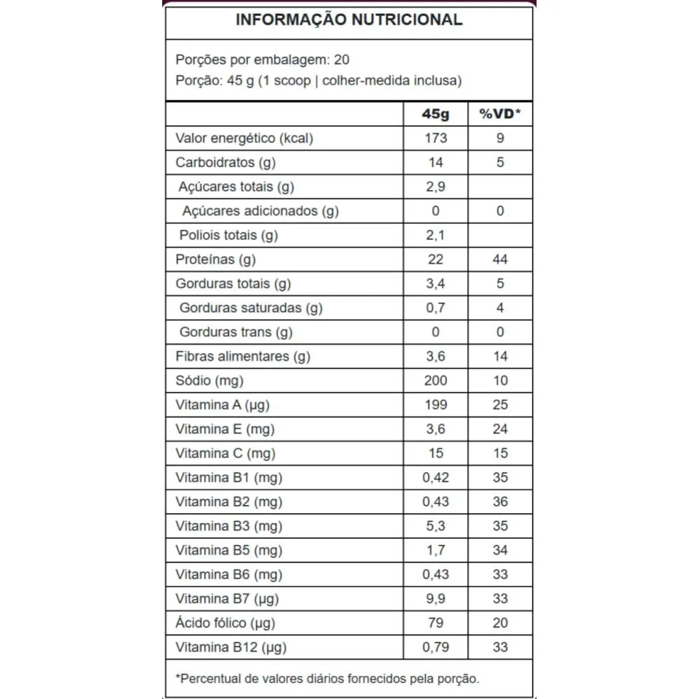 - 22 g de proteína vegetal por porção;