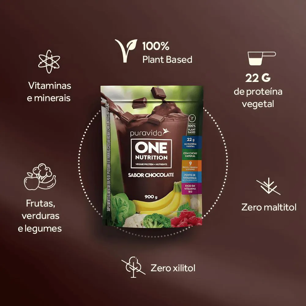 One Nutrition Chocolate – Pura Vida O One Nutrition Chocolate da Pura Vida é um suplemento alimentar em pó com sabor chocolate, formulado para complementar a ingestão de nutrientes de maneira prática e saborosa. Ideal para ser consumido no dia a dia, pode ser preparado com água, leite ou bebida de sua preferência, oferecendo praticidade para quem busca um complemento nutricional saboroso na rotina. Com a qualidade da marca Pura Vida, é uma opção versátil para quem quer uma forma rápida e agradável de adicionar nutrientes à alimentação diária. Benefícios do produto: