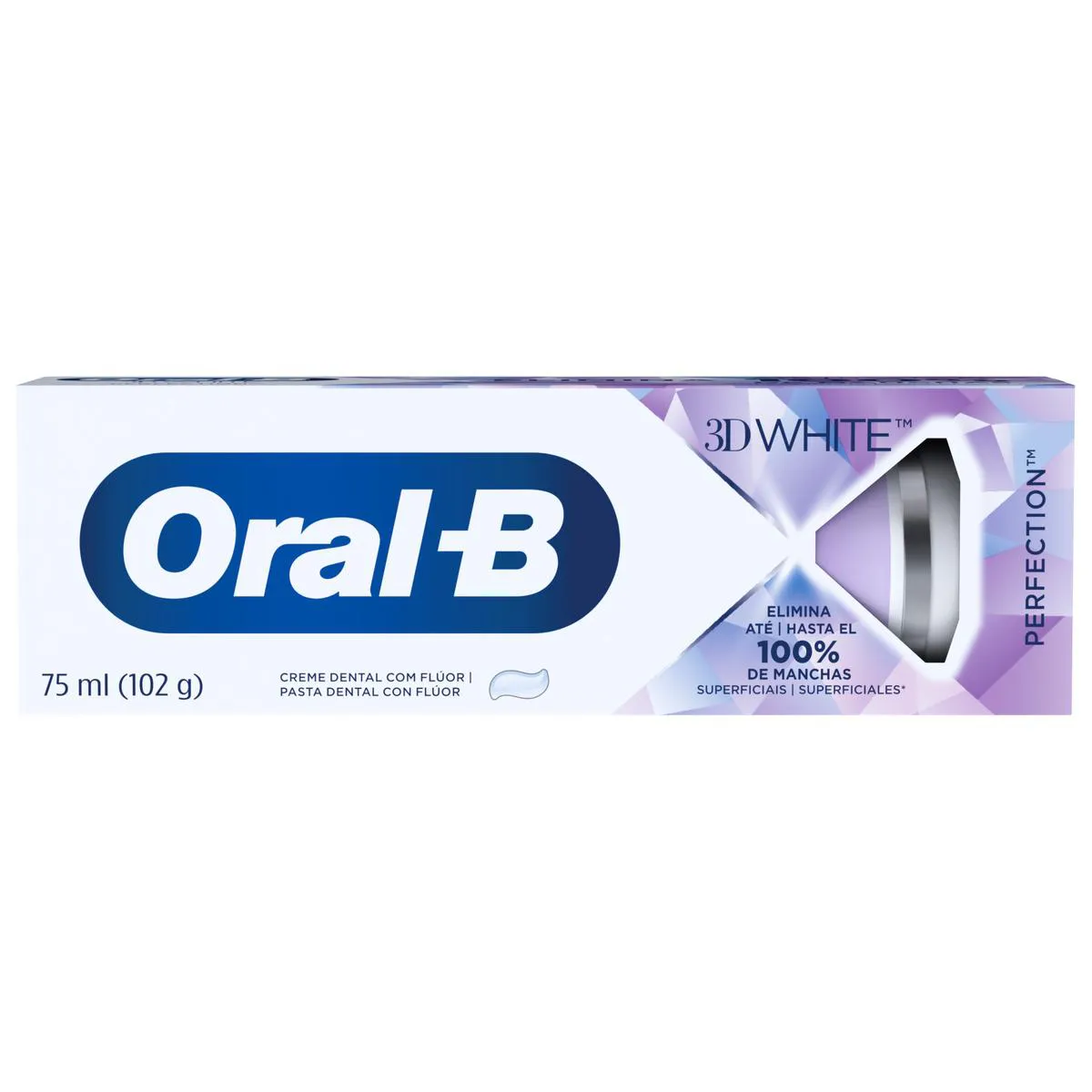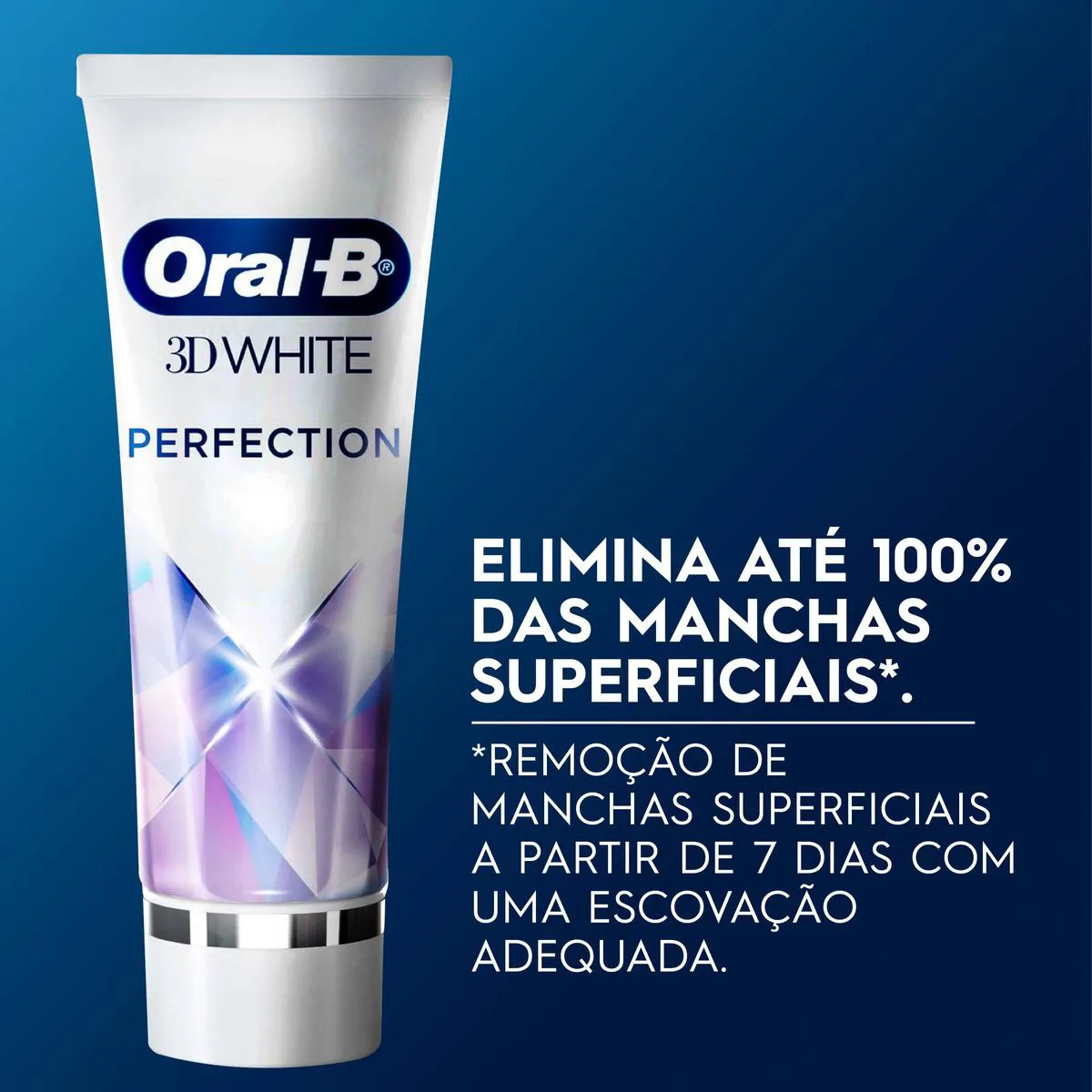 Oral-B 3D White Perfection é um creme dental com a mais avançada tecnologia de branqueamento da Oral-B. Clinicamente comprovado, remove até 100% das manchas superficiais em 3 dias de uso, com uma escovação adequada e regular.