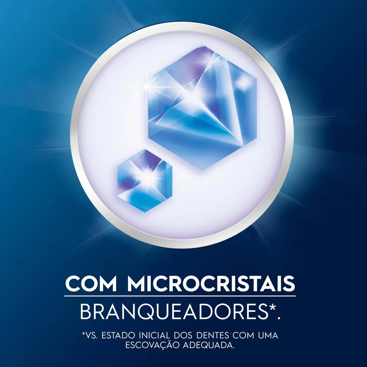 Possui um sistema de Micro-polidores que ajudam a remover até 100% das manchas superficiais em apenas 3 dias - mediante uso regular e adequado -, e rapidamente se dissolvem na boca para prevenir que novas manchas se formem na superfície do esmalte.