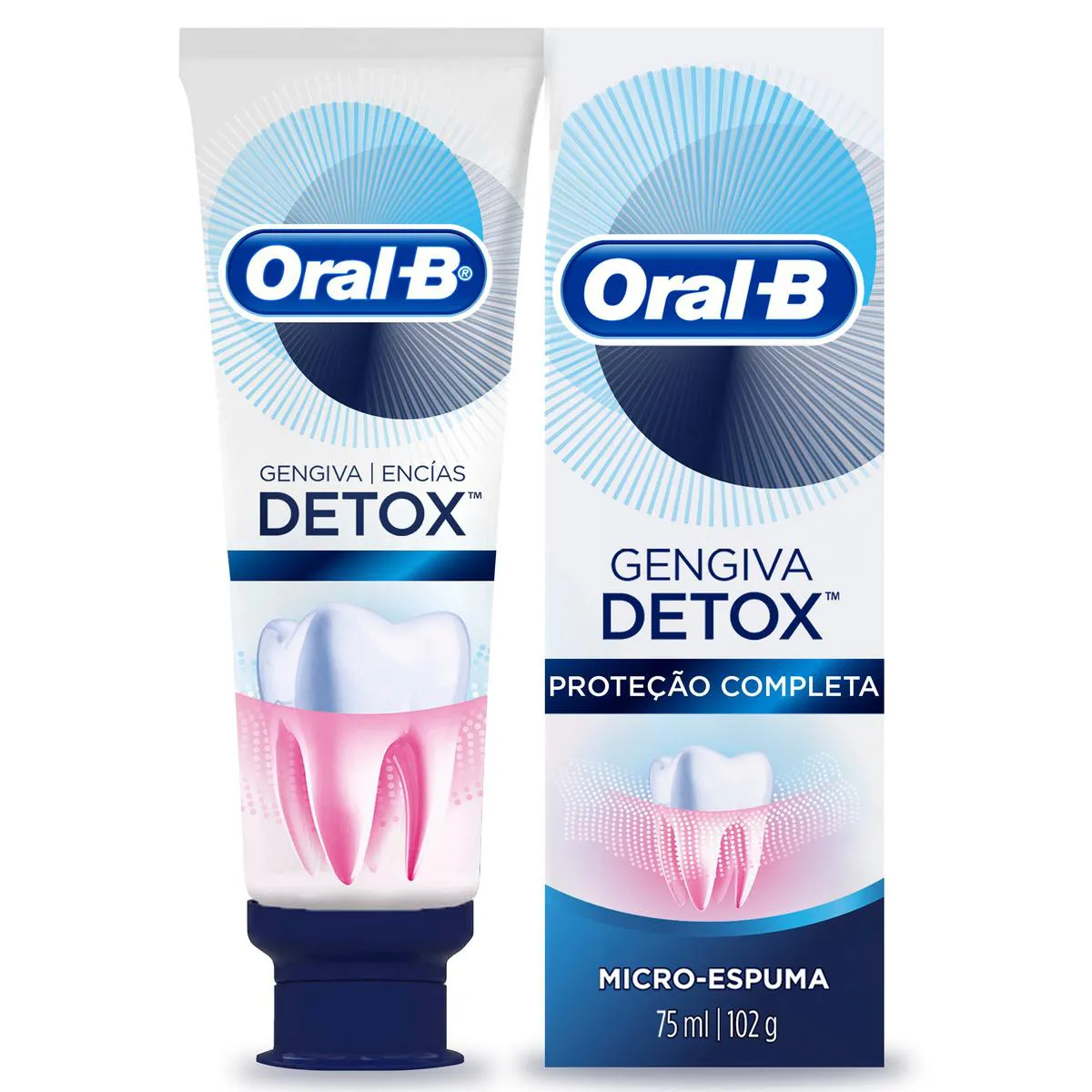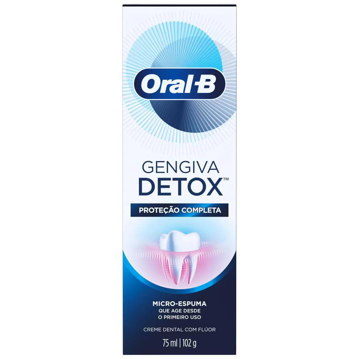 Creme Dental Oral-B Detox Proteção Completa é uma pasta de dente com flúor que limpa profundamente entre os dentes e a gengiva.
