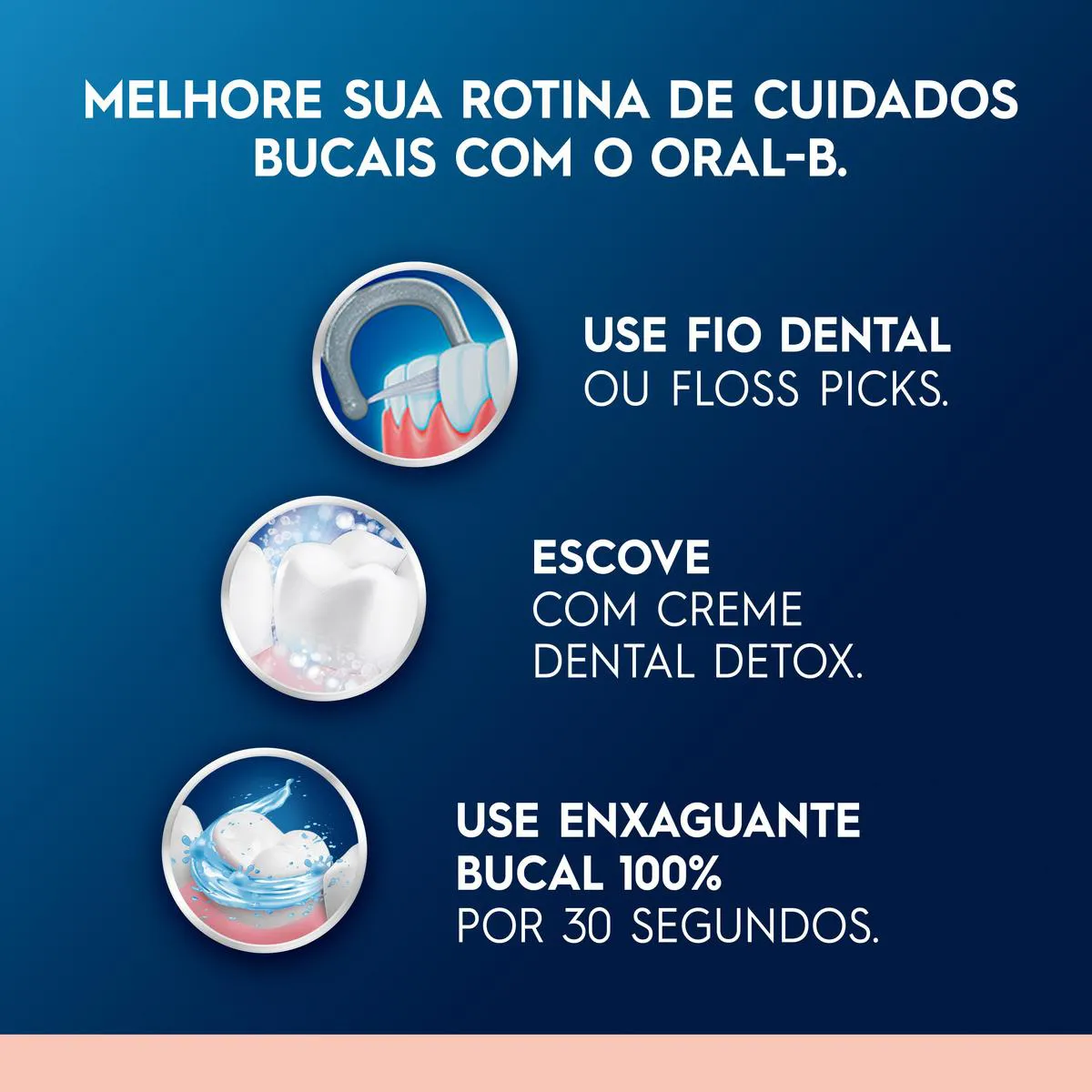 - Complete com escovação da língua e uso diário de fio dental.